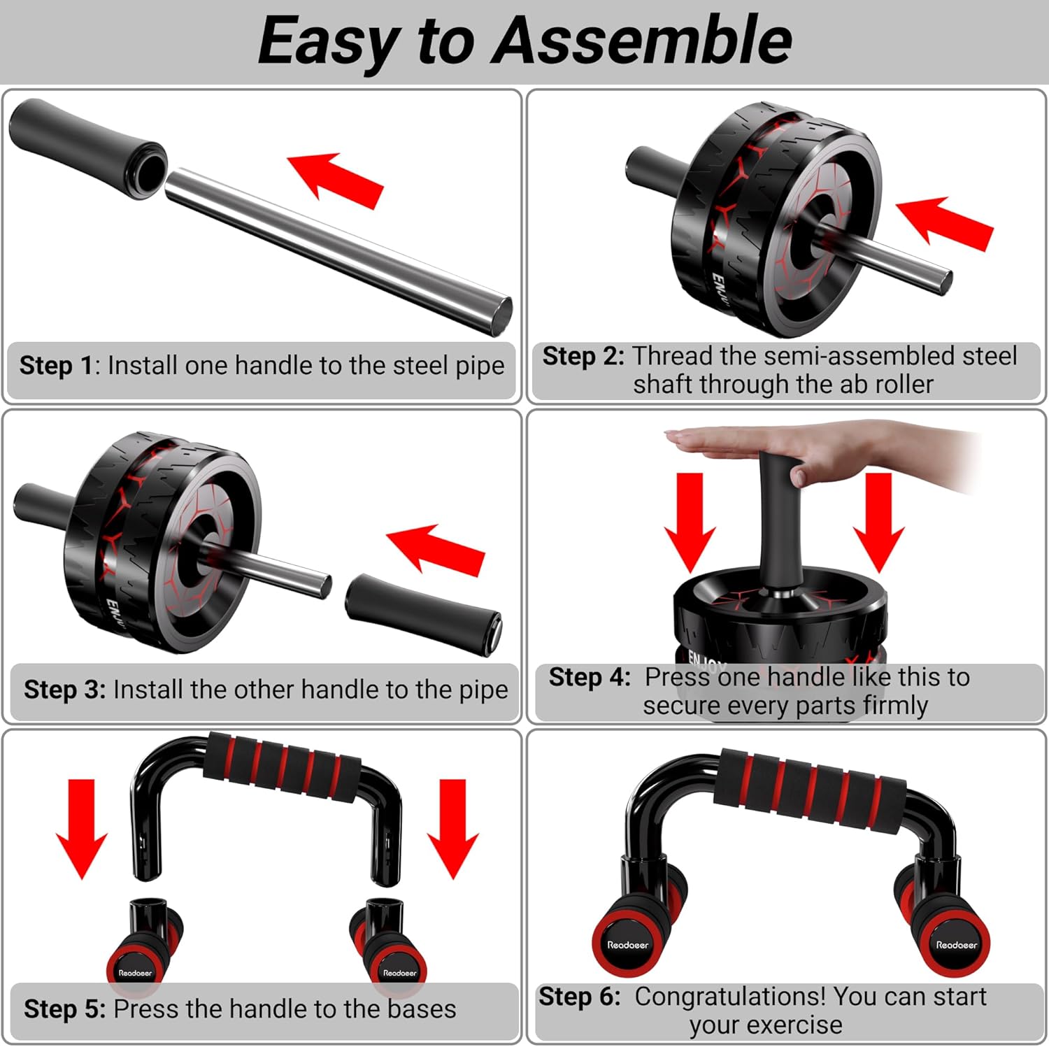 Comprehensive Exercise Set-Ab Wheel Roller Kit : 1 AB Roller Wheel, 1 Thick Foam Knee Mat , 2 Push Up Bars Handles Grips, 2 Wrist Wraps, 1×8-shaped Stretched Band, 1 Jump Rope, 1 Guide Book, 1 Gift Box Package. 10-IN-1 ultra-wide ab roller wheel is designed to help you build stronger, bigger abdominal muscles.