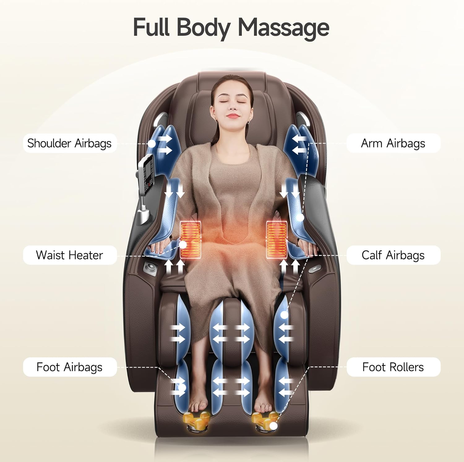 Calf Massage: 4 fixed-point roller massage on the sole of the foot, airbag massage on the sole of the foot and calf, the footrest can be extended 5.7 inches to relieve calf fatigue