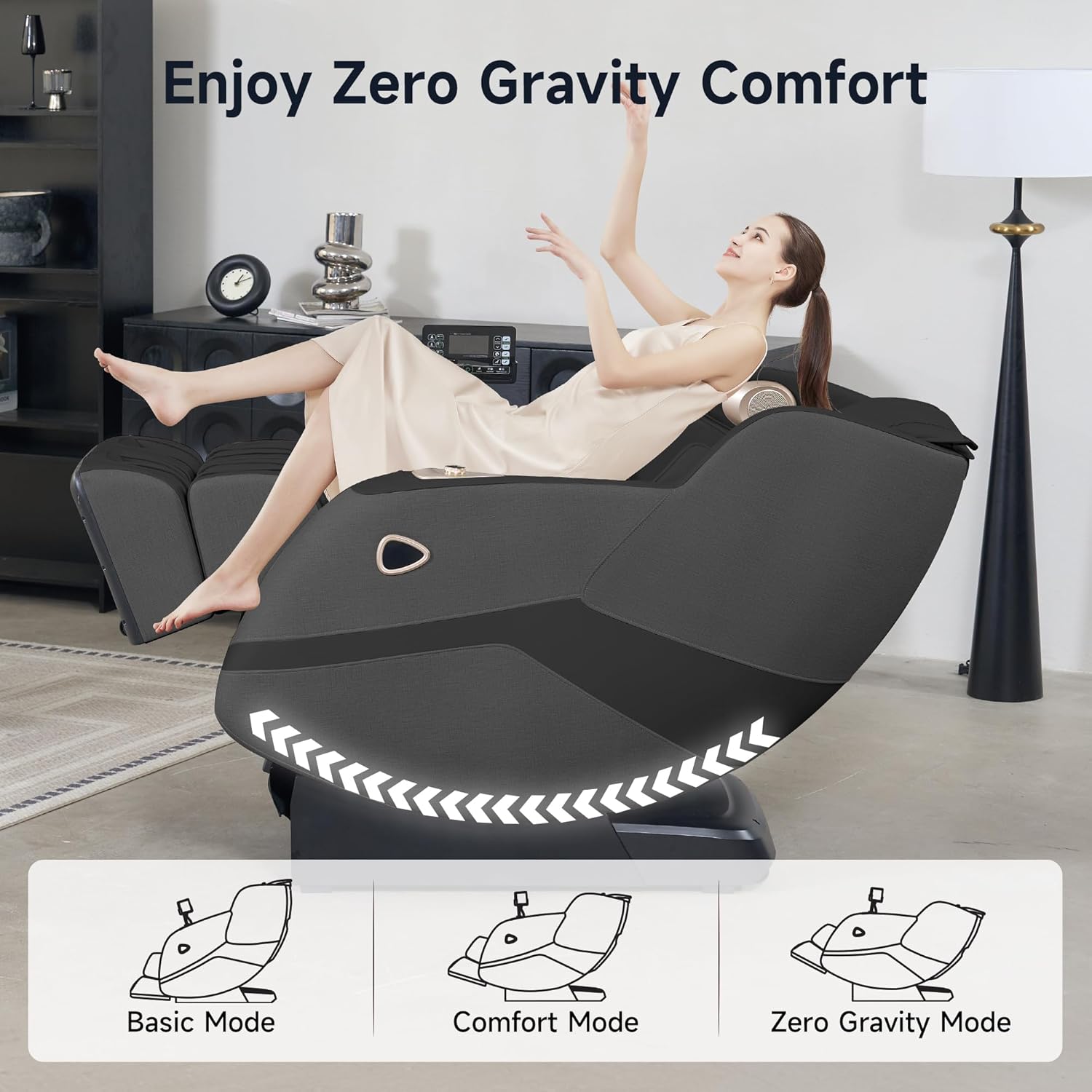 The massage chair features a zero gravity design, allowing the body to be in a natural relaxed position .16 preset automatic massage programs and 6 manual massage modes for different body conditions and needs.