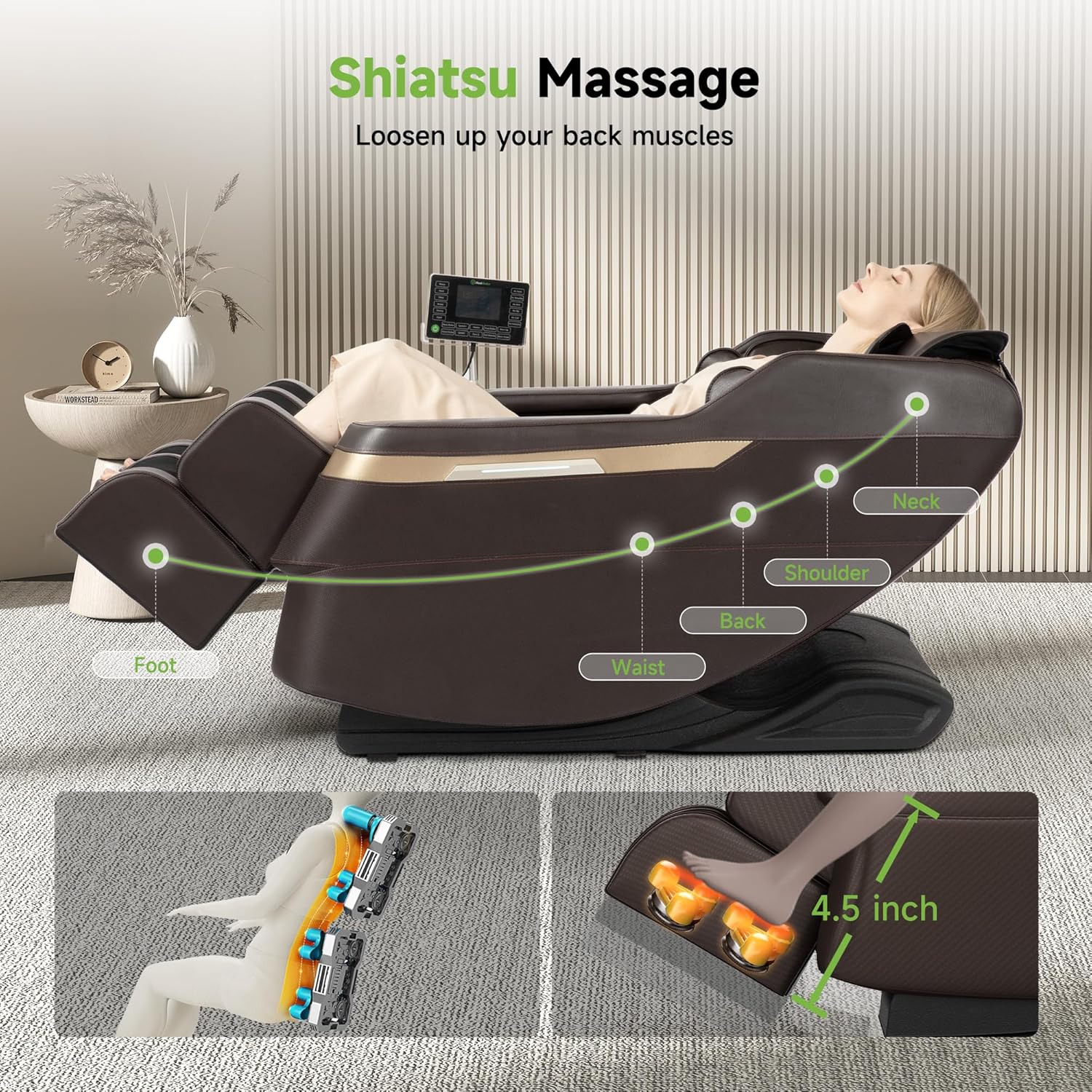 Real Relax Full Body Massage Chair, Shiatsu Zero Gravity Recliner with 6 Auto Modes, Waist and Calf Heating, Foot Massage, Calfrest Extension, Bluetooth, Brown and Gold