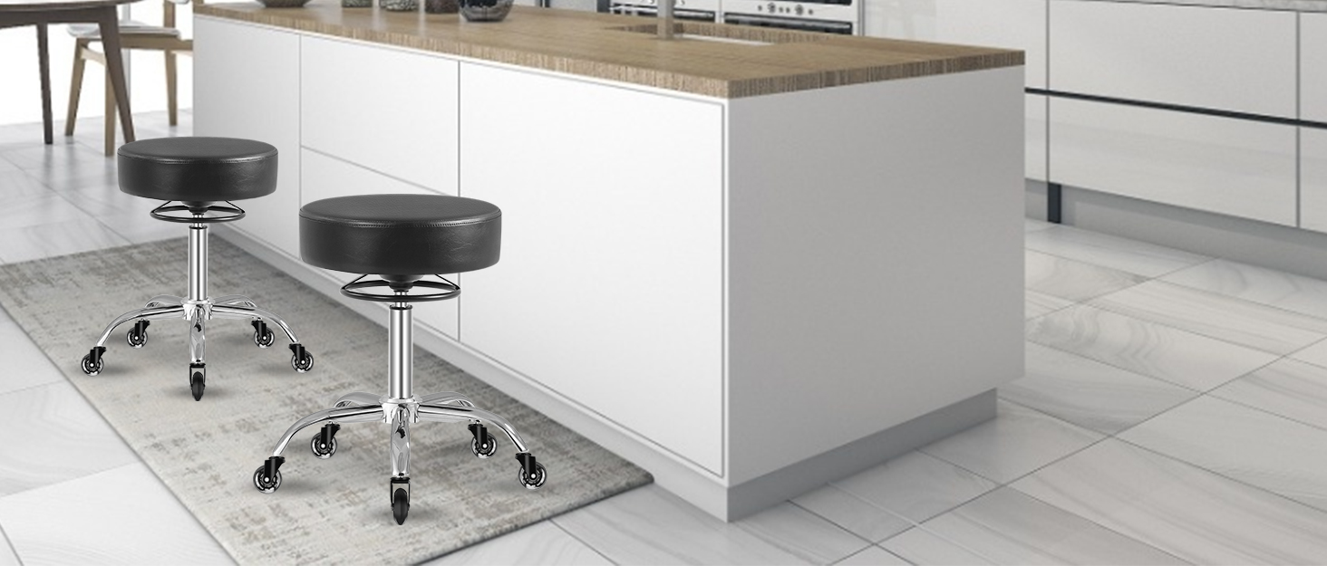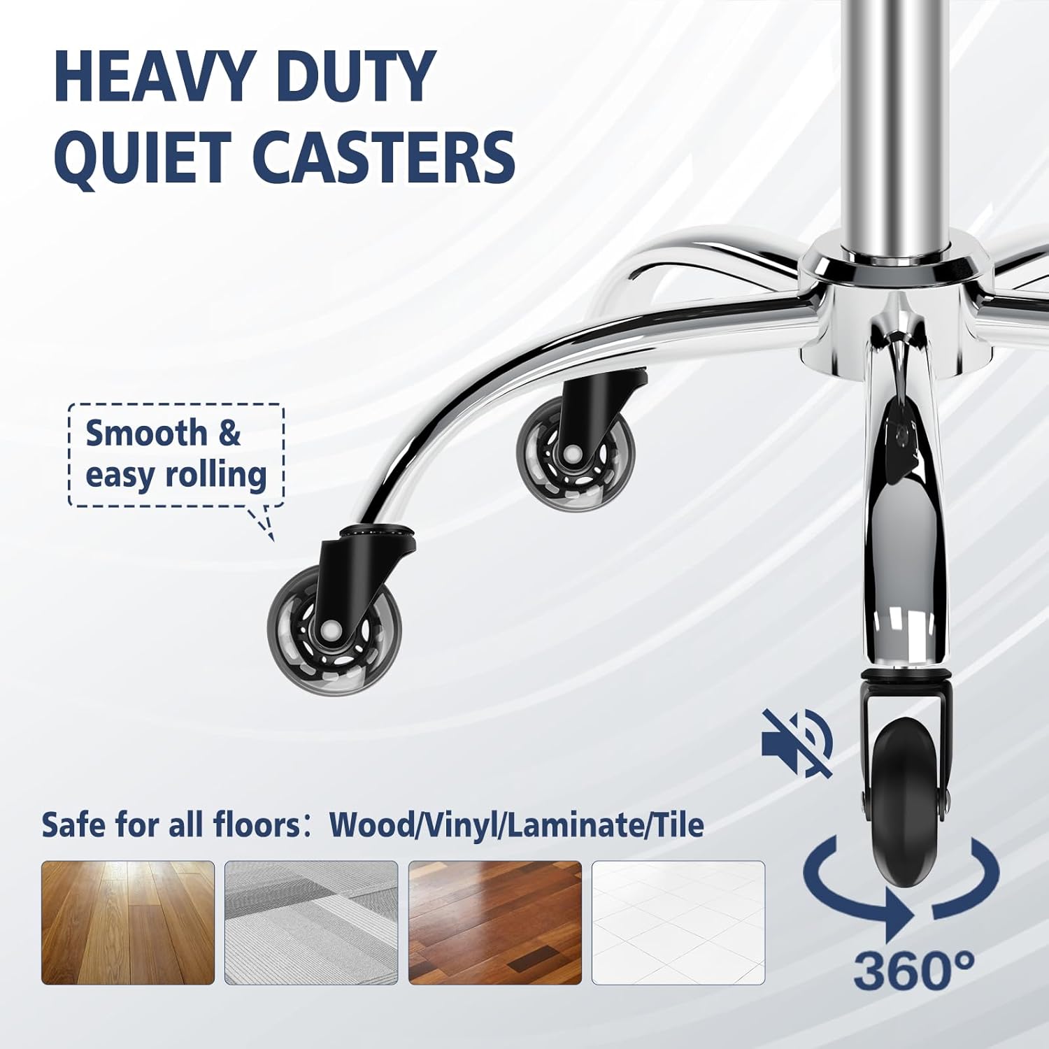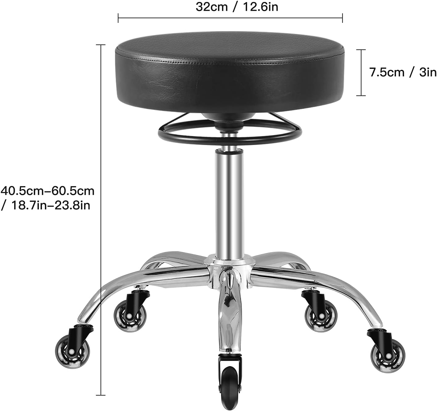 【400LBS WEIGHT CAPACITY】 This rolling stool with wheels is constructed of strong chrome finish base and heavy duty casters,massage stools,stool chair can hold up to 400lb, ideal solution for salon, studio, tatoo,message,medical professionals as well as at-home daily use.
