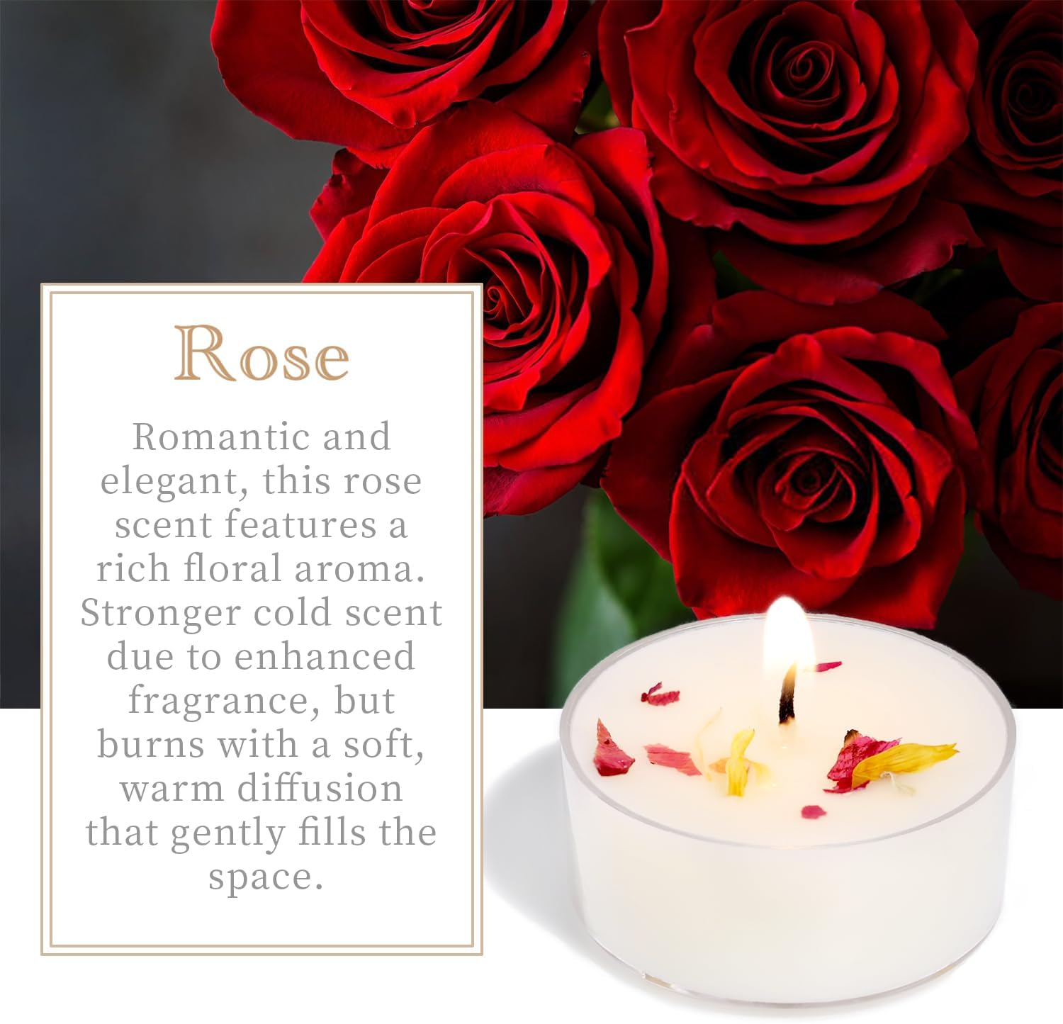 Rose Scented Tealight Candles, 8 Pack- Extended 4-5h Clear Cup Scented Tea Lights with Handmade Floral Surface, 100% Natural Palm Wax Tealights Smokeless for Romantic Wedding, Bathing