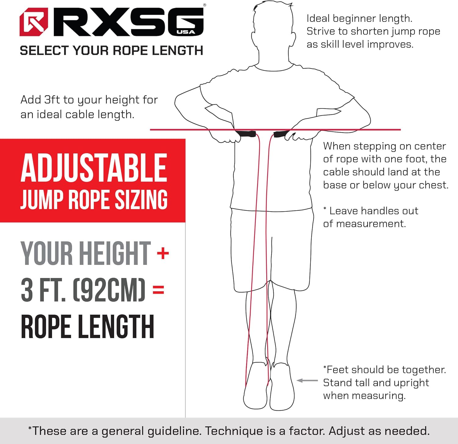 THREE SIZE OPTION. Available in Small, Medium and Large so everybody can get jumping. Small is recommended for height ranges 4’8″ to 5’2″, Medium is for height ranges 5’3″ to 5’8″ and the Large is best suitable for height ranges 5’9″ to 6’2″. Rope can stretch upwards of 6 inches when in use.