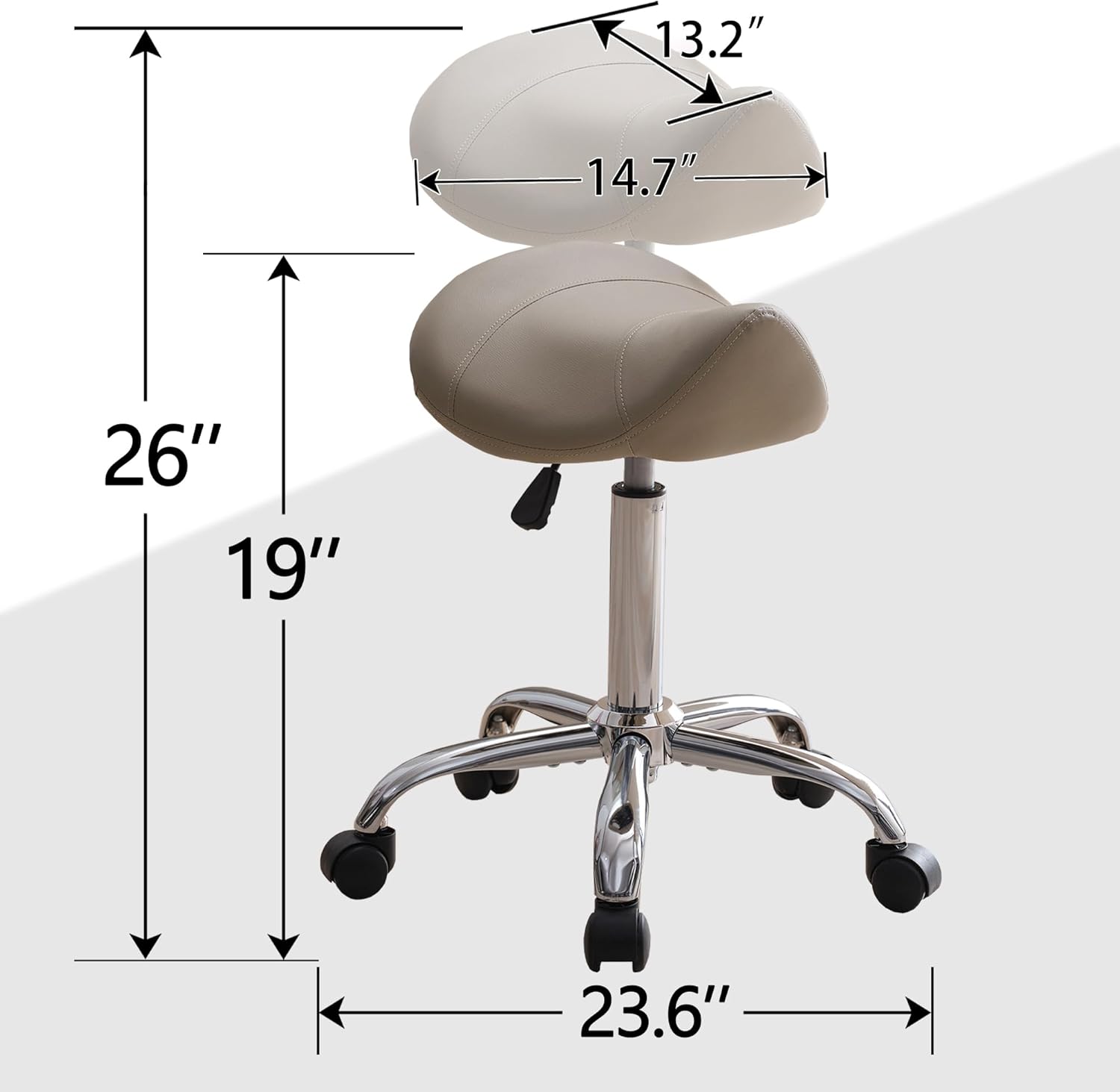 【360 Swivel Saddle Stool】 This saddle seat features a 360-degree swivel function, allowing for easy rotation, and is equipped with 5 swivel casters for move easily and smoothly without making noise, as well as to prevent scratching of the floor.