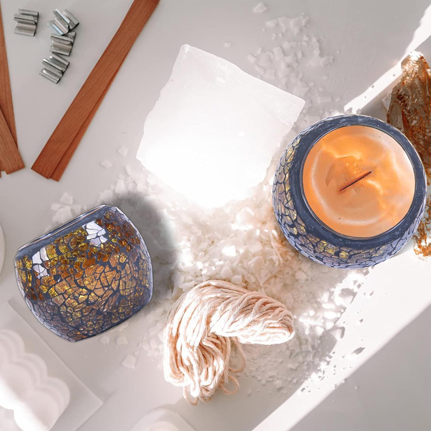 Scented Candle Holder Mosaic Glass Tea Light Holder,Handmade Romantic Glass Tealight Candle Holder for Aromatherapy,Party Décor(NO Candles),Also Used as Vase,Pen Holder,Potted Plants Bowl (Amber)