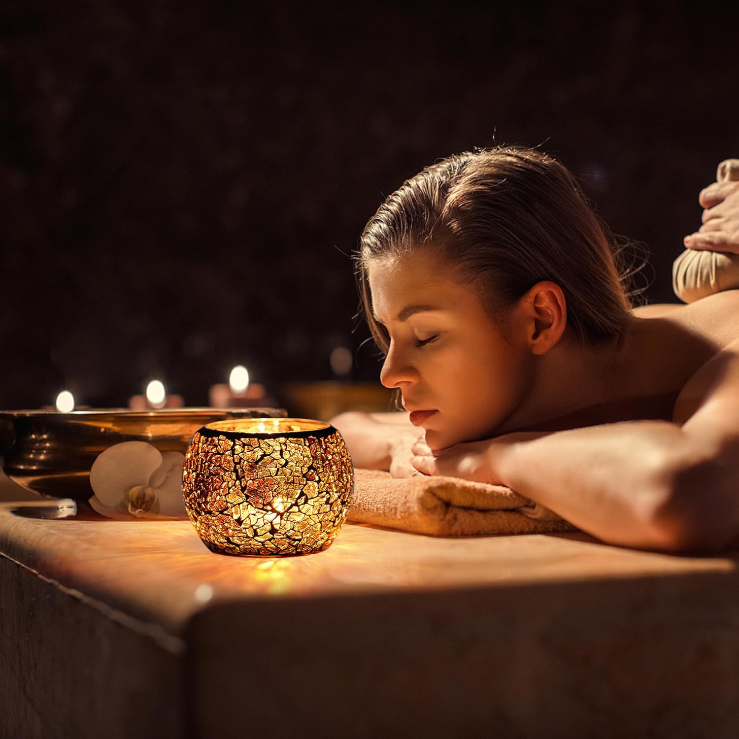 Scented Candle Holder Mosaic Glass Tea Light Holder,Handmade Romantic Glass Tealight Candle Holder for Aromatherapy,Party Décor(NO Candles),Also Used as Vase,Pen Holder,Potted Plants Bowl (Amber)