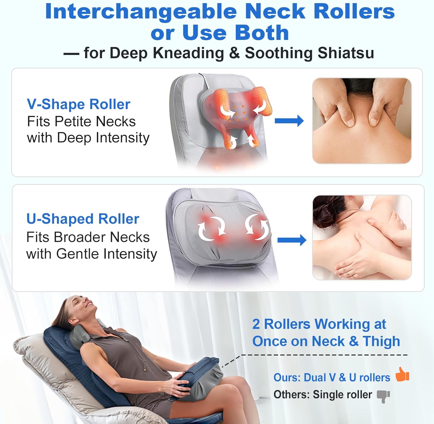 Dual V-Shaped and U-Shaped Neck Massagers · Thoughtful Service: Select the ideal neck massager based on height and preferred pressure intensity. Includes a comfort blanket for pressure-sensitive users to cover the massage chair cushion, reducing massage intensity and boosting comfort
