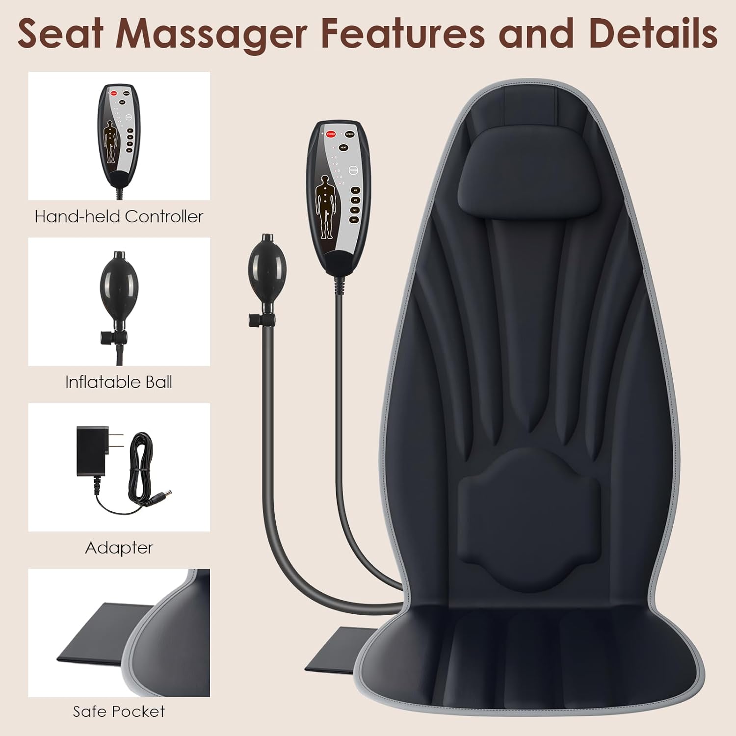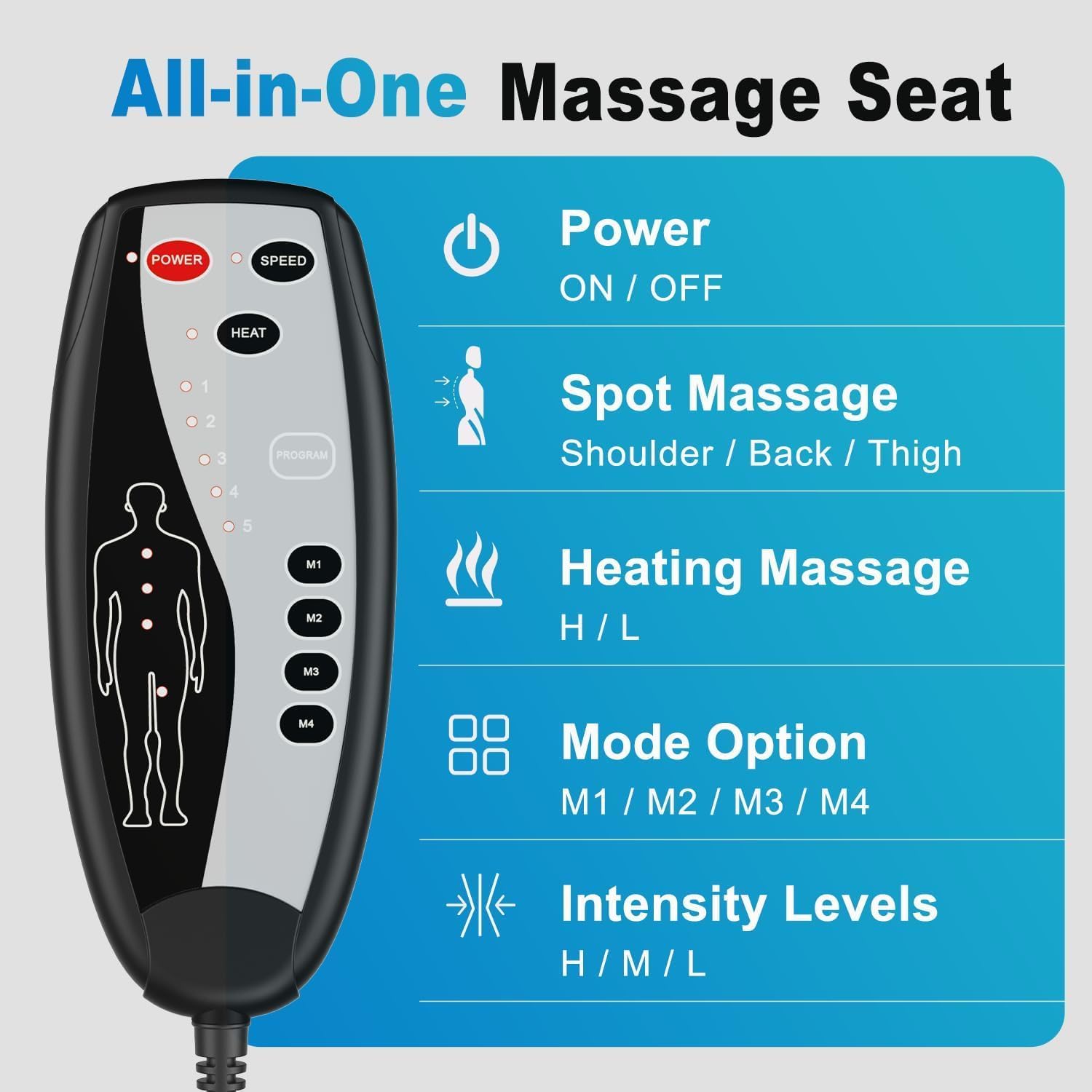 Multiple Functions Heated Pad: This massage chair pad is equipped with 4 massage modes, 3 massage intensities, and 2 heating intensities. The equipped manual controller and manual inflation balloon allow you to adjust to the ideal usage mode