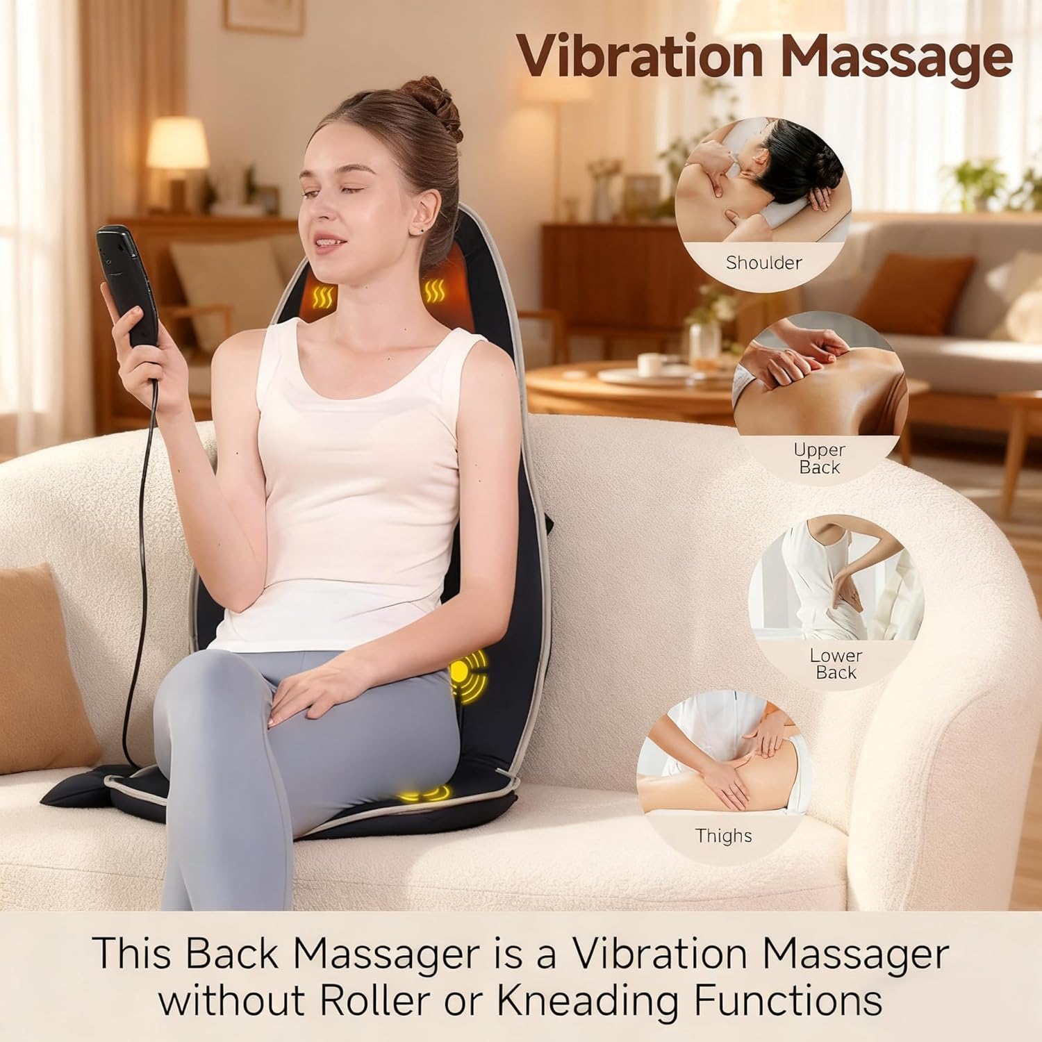 SLOTHMORE Back Massager with Heat, Seat Massager for Full Back with 8 Vibrating Motors and 2 Heat Levels, Chair Massager for Office/Home