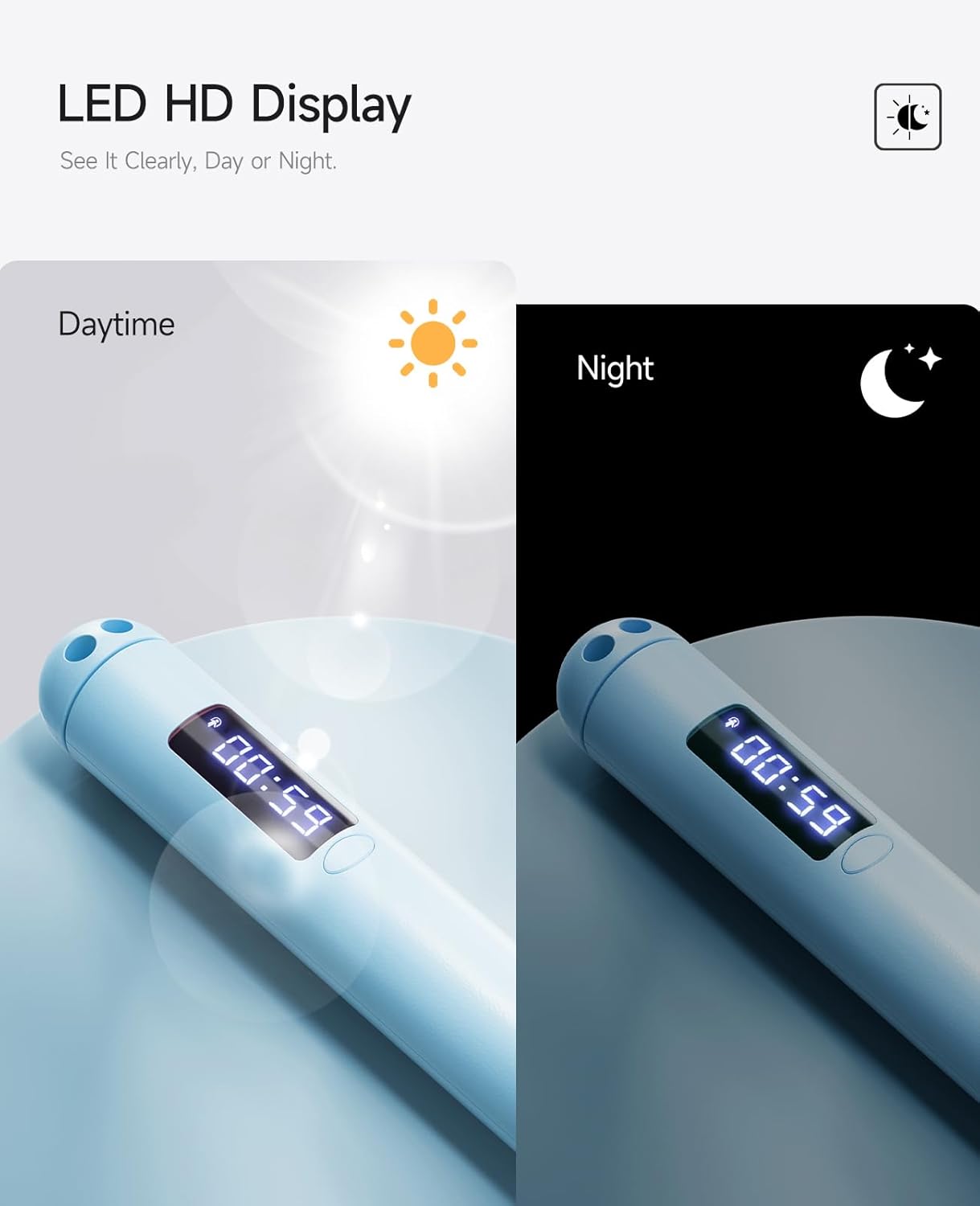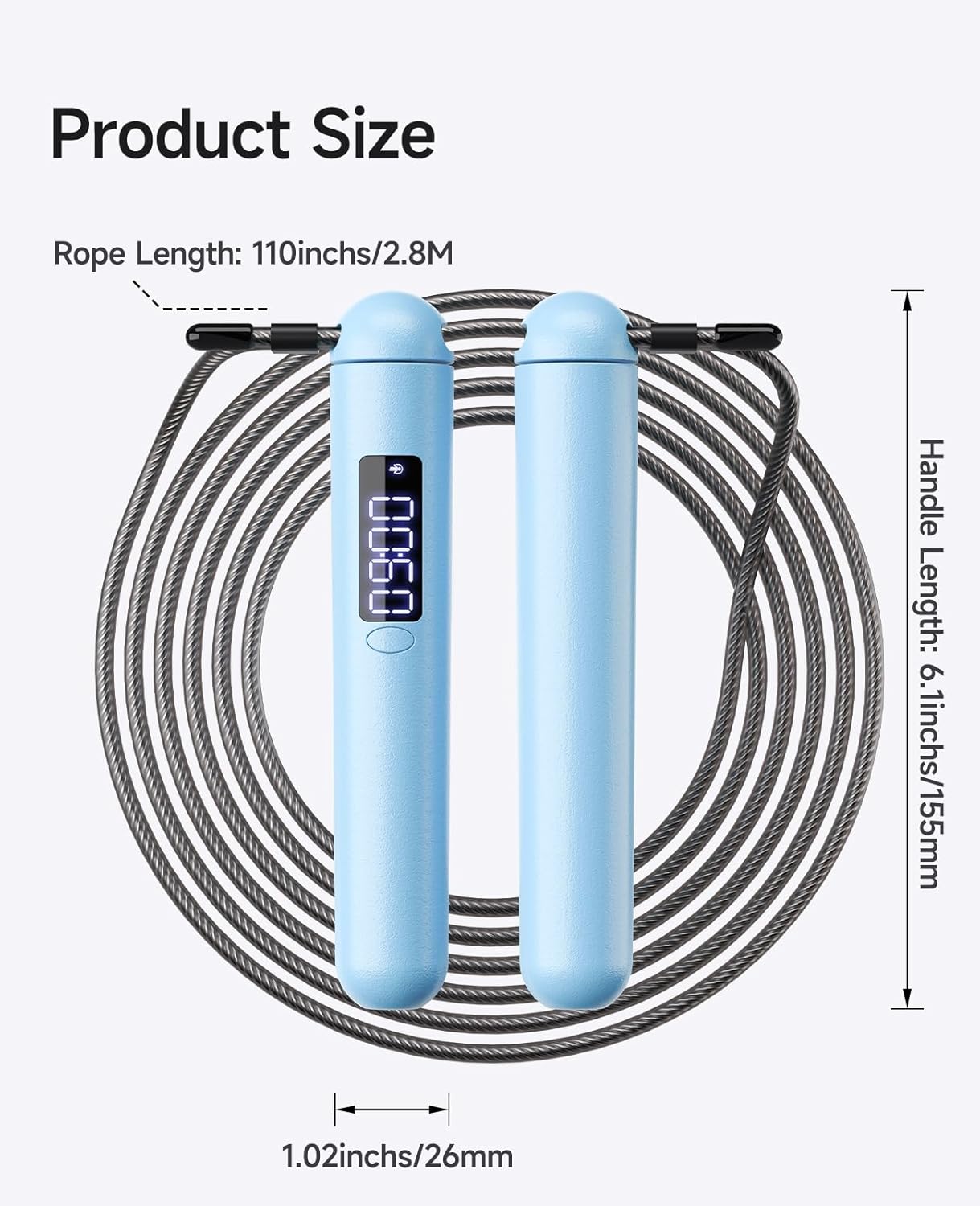 Effortless for Everyone: Adjustable Length & Clear Visuals One rope fits all (3’3″ to 6’7″)! Easily adjust the rope length in seconds without any tools or cutting – making it perfect for teens, adults, and the whole family. The super-bright LED screen provides crystal-clear feedback on your reps, time, and calories, even in direct sunlight. USB-C charging and a 180-day standby battery mean it’s always ready for your next session.