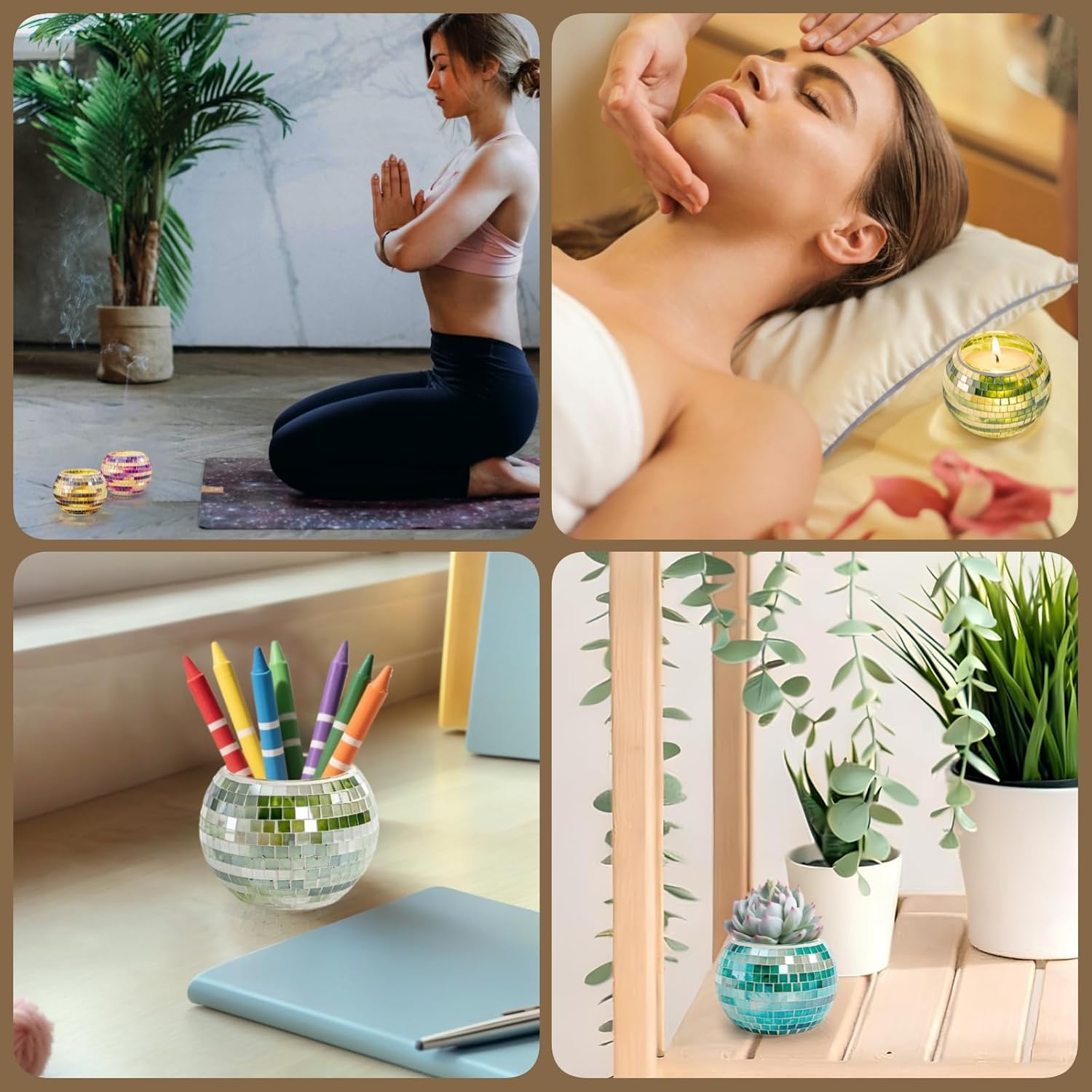 Handmade Material: SOUJOY Votive candle holder is made high temperature resistant thick glass and plaster, with hundreds small glass fragments pasted on glass bowl, which ensures the holder’s sturdiness