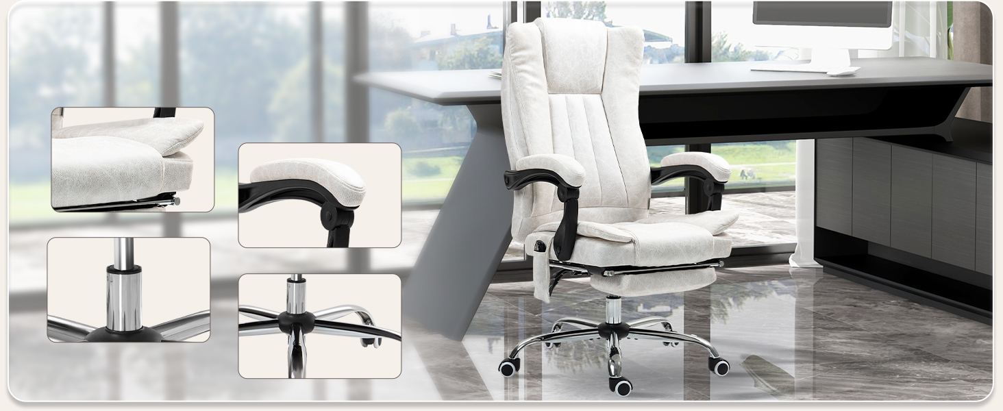Customizable Experience: Tailor your seating experience with this reclining office chair that adjusts to any angle up to 135°. It features a 360-degree swivel, adjustable height, and a retractable footrest, ensuring support and comfort in any position.