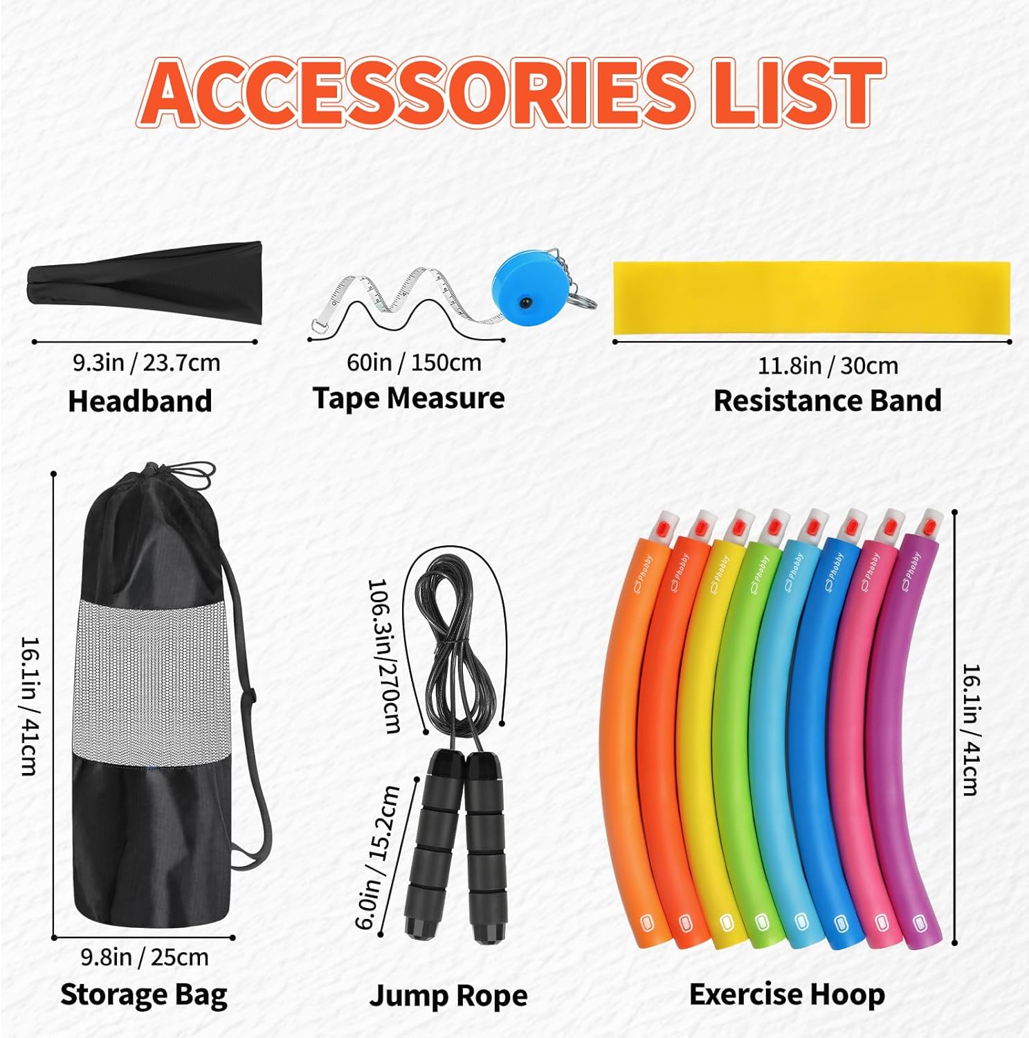 All-in-One Workout Kit: The exercise hoop set comes with a jump rope to improve cardio, a sweat-wicking headband, and a resistance band for post-workout stretching. Maximize results with one compact set