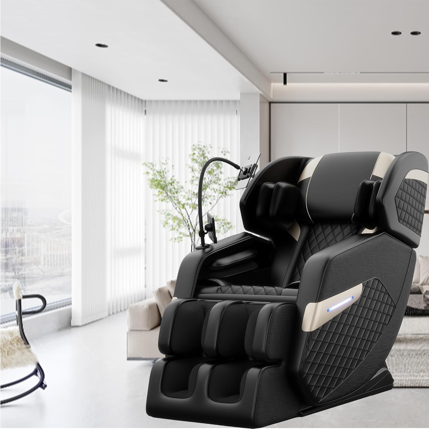 【Smart Control Panel – 5 Auto Modes + Custom Routines】Operate via touchscreen control + phone holder – switch between relaxation programs while enjoying music through built-in speakers. Three-layer airbag technology adapts to body curves, transform your home into an entertainment hub while enjoying therapeutic massages
