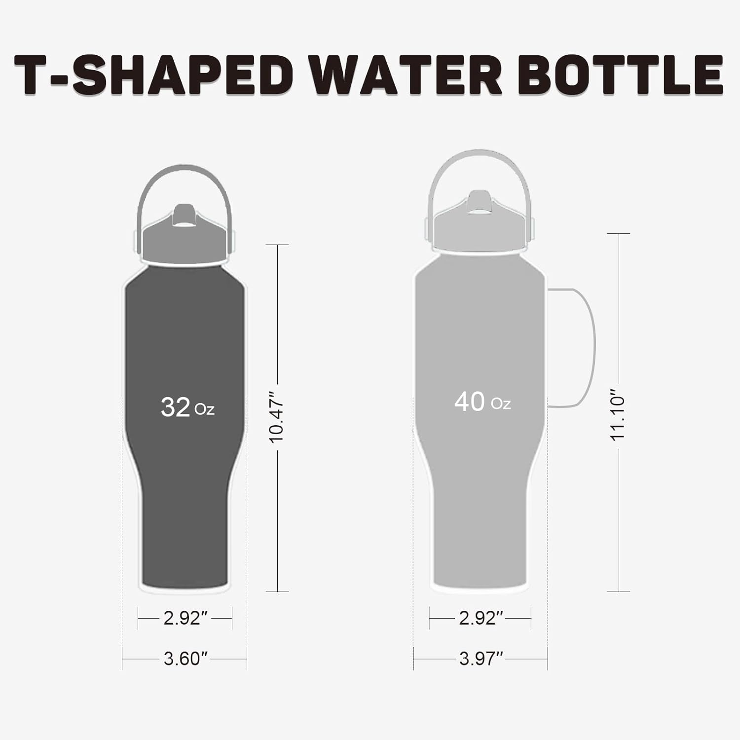 【T-SHAPED FOR CUP HOLDER】 Designed with a sleek and slim outline, this T-shaped black water bottle fits in most car cupholders. ABOTOCUP T-shaped water flask suitable for outdoor when driving, cycling, beach holidays, and camping. 32 oz large capacity keeps your adventures running longer.