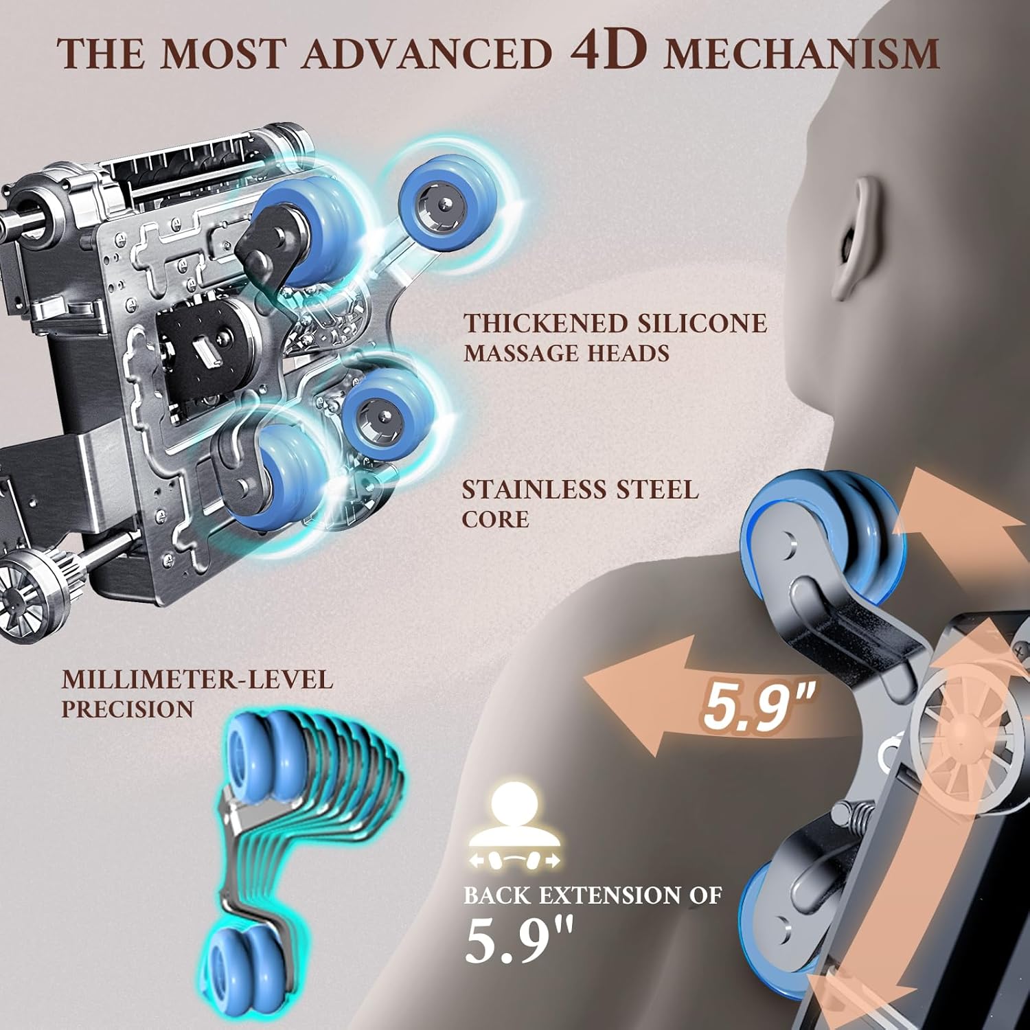 The Most Advanced 4D Mechanism & 53.14″ SL Track: Equipped with the latest 4D technology, the chair’s mechanism delivers a deep, precise, and dynamic massage, covering a wide area with its 53.14″ SL track. This ensures a seamless transition from neck to thighs for a full-body massage experience.
