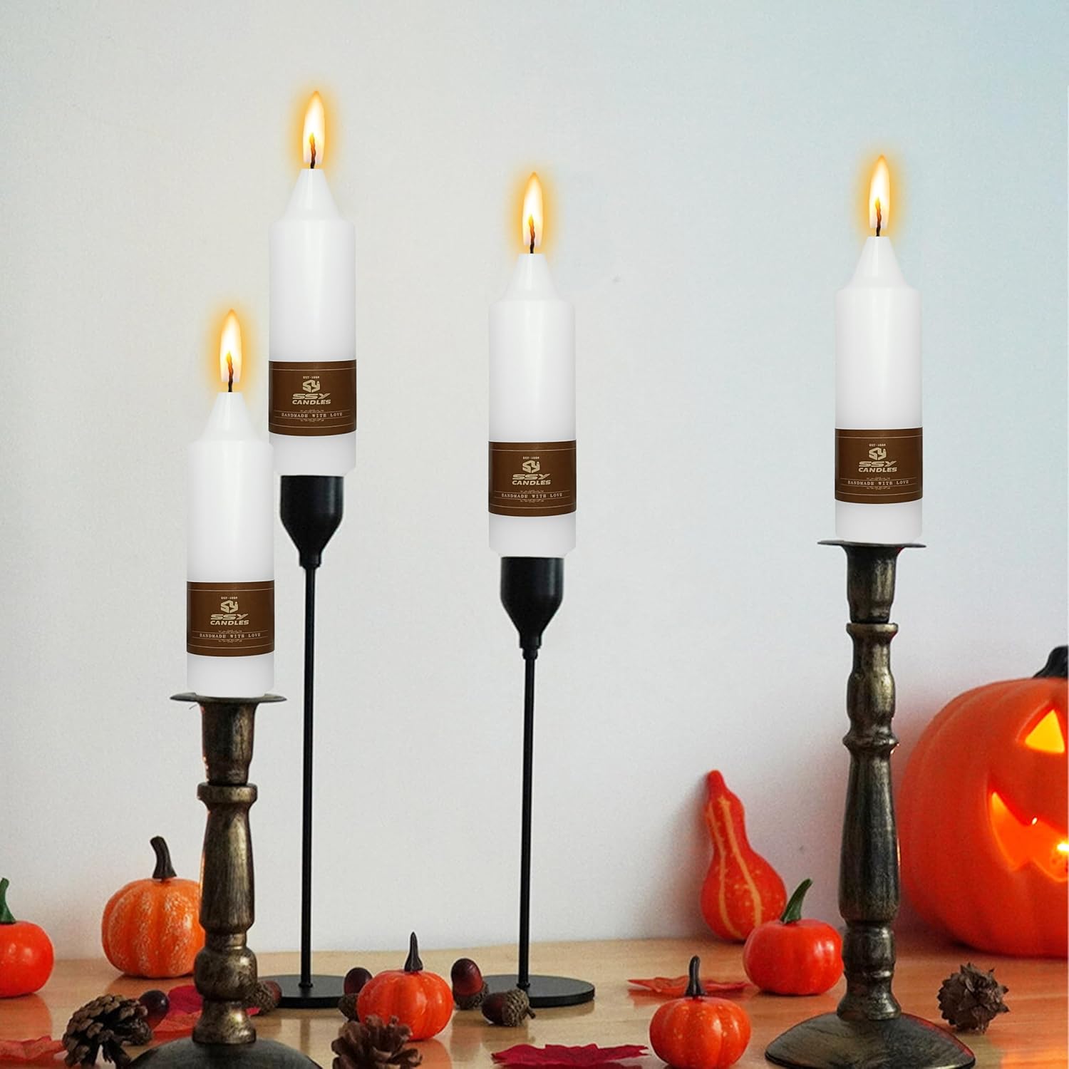 【Fun DIY Halloween Taper Candles 】 Unleash your creativity with our 4-pack of short white taper candles! These blank canvases are perfect for DIY Halloween candlesticks—decorate them to look like ghosts, skeletons, or other festive figures. It’s a fun family activity that sparks imagination and delivers a personalized touch to your Halloween setup. These small taper candles offer a unique and engaging experience for all ages.