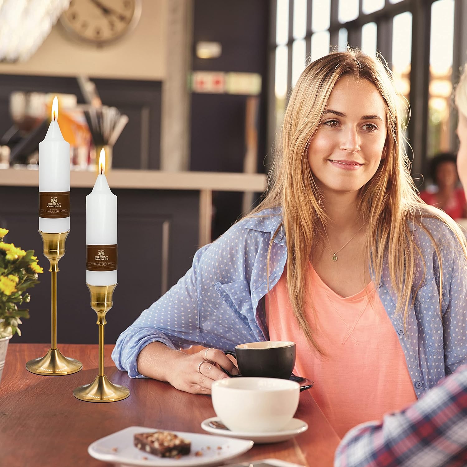 【Long-Lasting Unscented Candles for Every Occasion】Each handmade candle is made with pure cotton wick to ensure a clean and even burn. This makes it an excellent choice for those who are looking for a high-quality and eco-friendly candle optionOur white taper candles are unscented and designed to be long burning, making them ideal emergency candles or for setting a tranquil mood. Their short candle sticks size ensures stability and fits most standard holders.