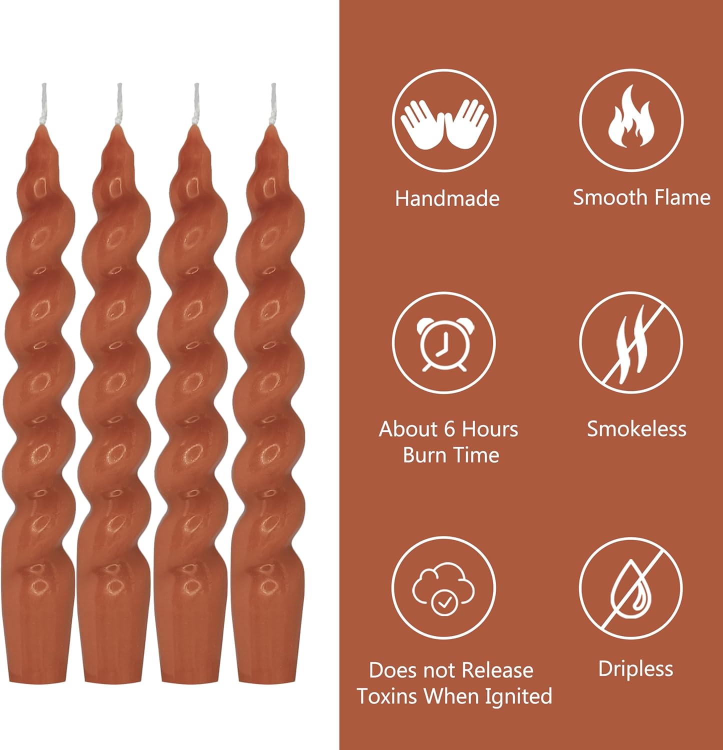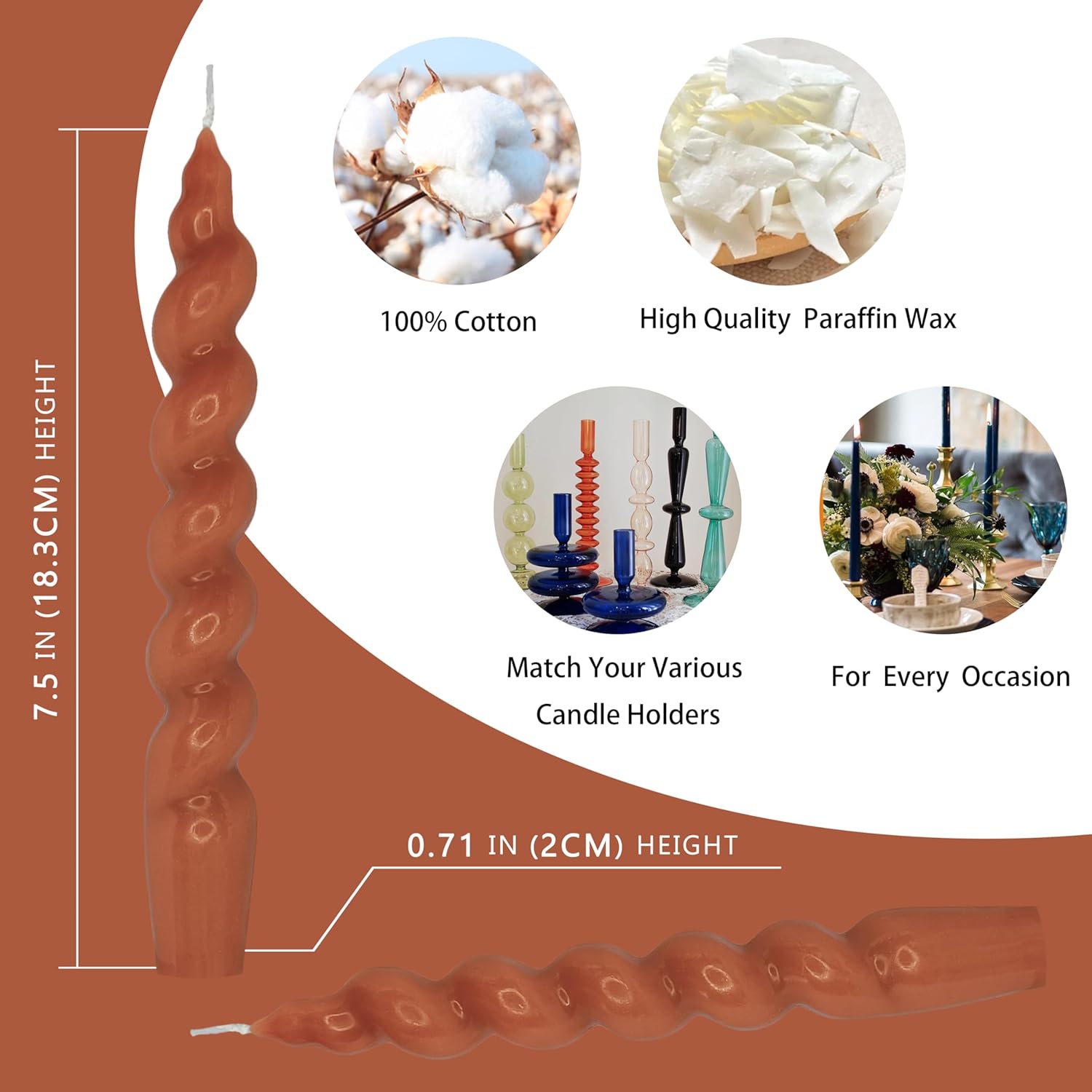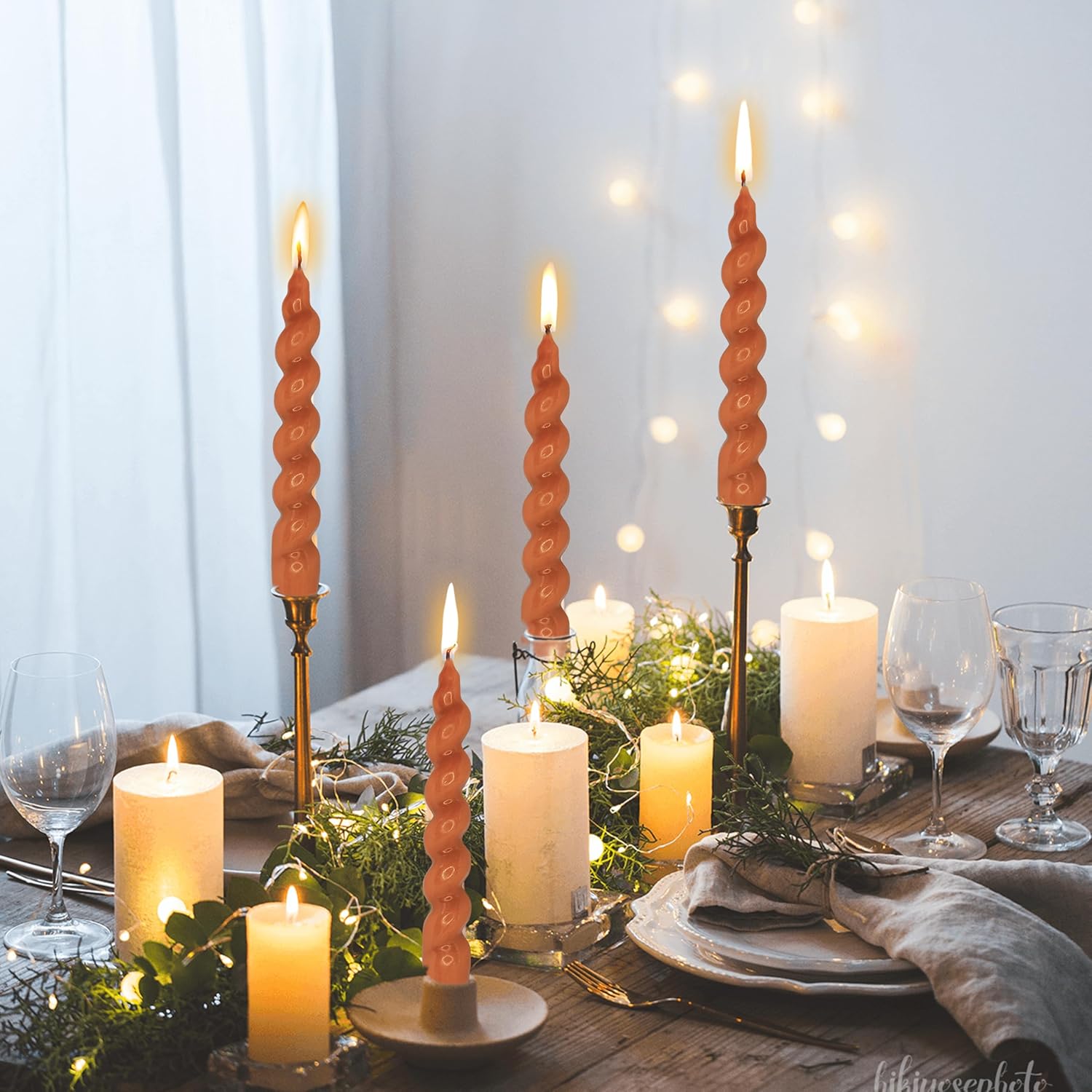 Exquisite Unscented Spiral Candles: Our taper candles enhance your space with their elegant and sophisticated look. Each tapered candle has a slender shape and elegant swirl design, which can emit a soft and lasting glow for any occasion