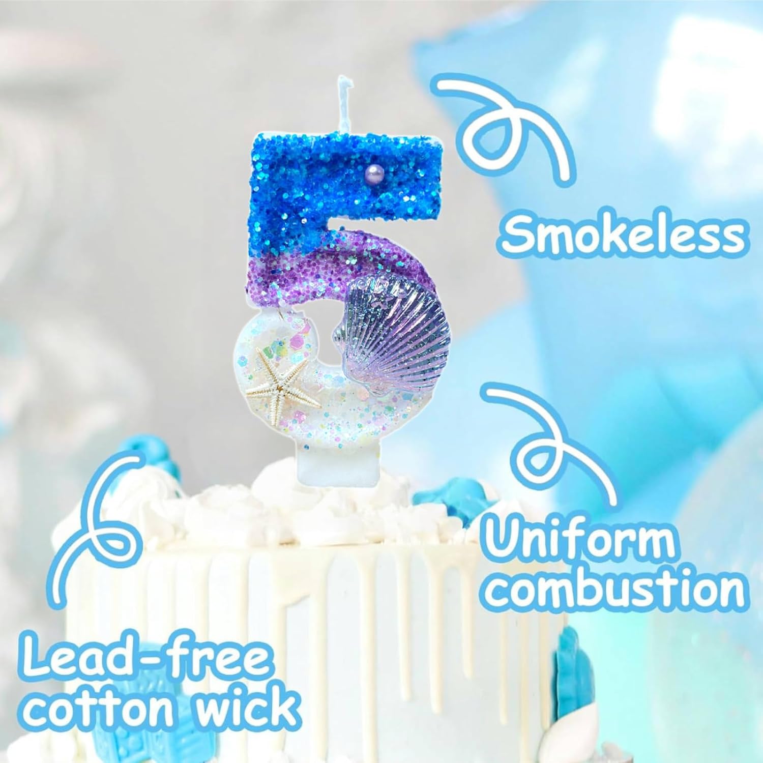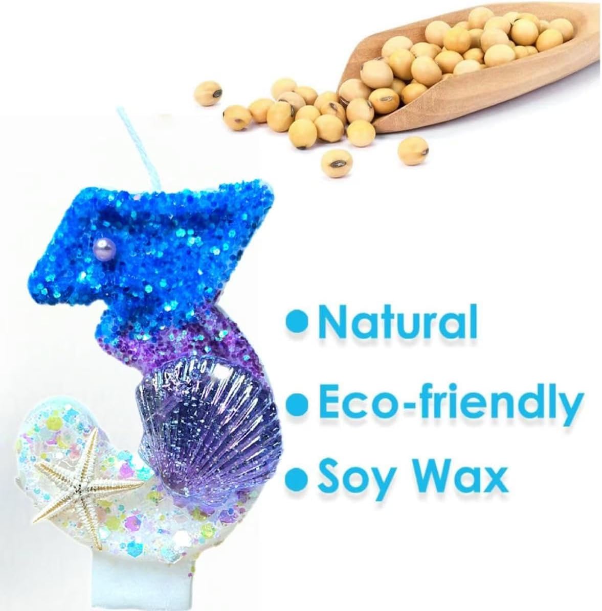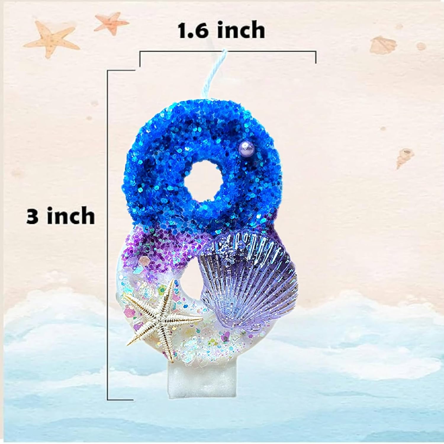 Handcrafted 3D Design with Stunning Details:Each candle is handmade with intricate starfish and shell accents, offering a vibrant 3D effect. The blue and purple hues shimmer elegantly, adding a magical touch to your celebration.