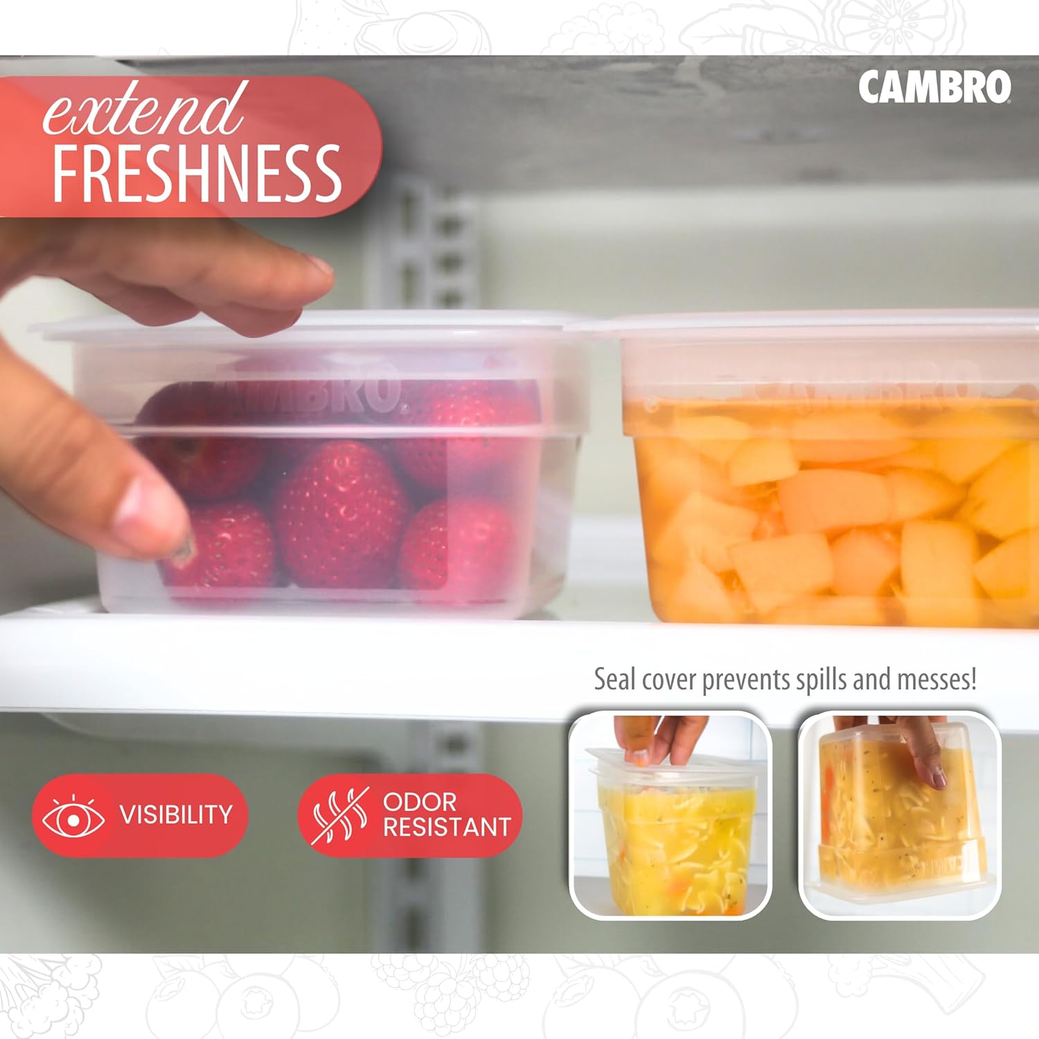 COMMERCIAL GRADE: Made from high quality plastic, these Cambro square deli containers are resistant to cracking and breaking, meeting the highest standards of durability.