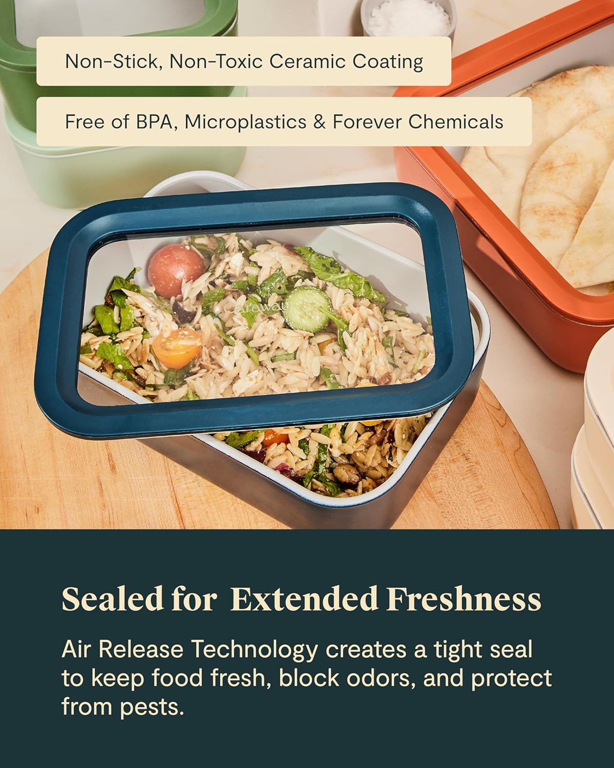 BEAUTIFULLY DESIGNED: The cleanest, best-looking approach to storing your food. Our glass container features a clear glass lid for easy viewing Each container comes in modern colors that will match with your entire Caraway collection.