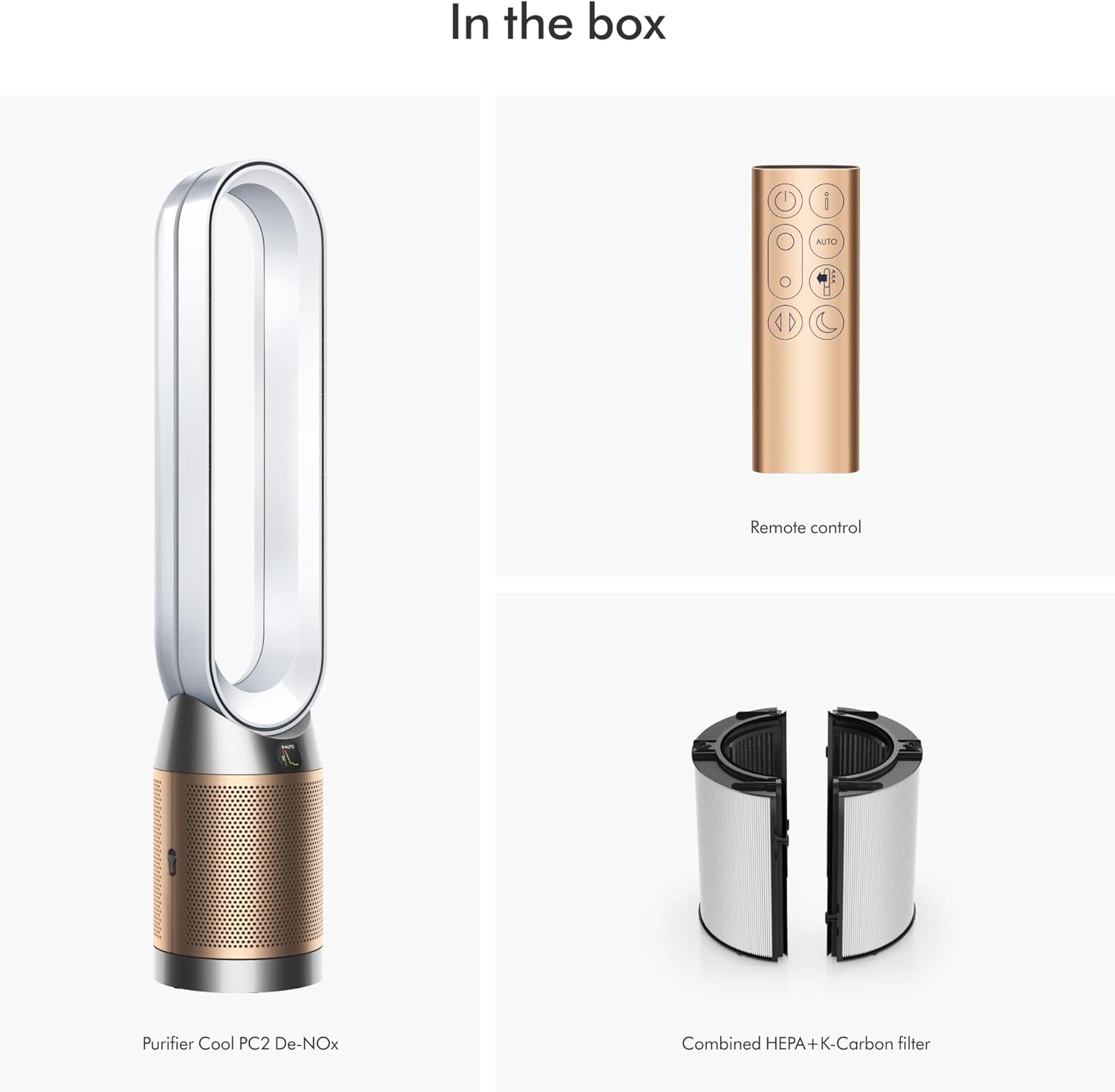 Dyson Purifier Cool PC2 De-NOx delivers whole-room purification⁴ and powerful cooling.⁶ Advanced air purification captures 50% more NO₂.⁸ Removes odors and gases,¹ and continuously destroys formaldehyde.⁹ The fully sealed, 3-stage filter system captures 99.97% of particles as small as 0.3 microns.³ The whole purifier, not just the filtration system, is fully sealed to HEPA H13 grade.³ Air Multiplier™ technology projects over 76 gallons per second of smooth, yet powerful airflow.⁷ Connects to the MyDyson™ app to control and monitor air quality from anywhere, or hands-free with compatible voice services.⁵