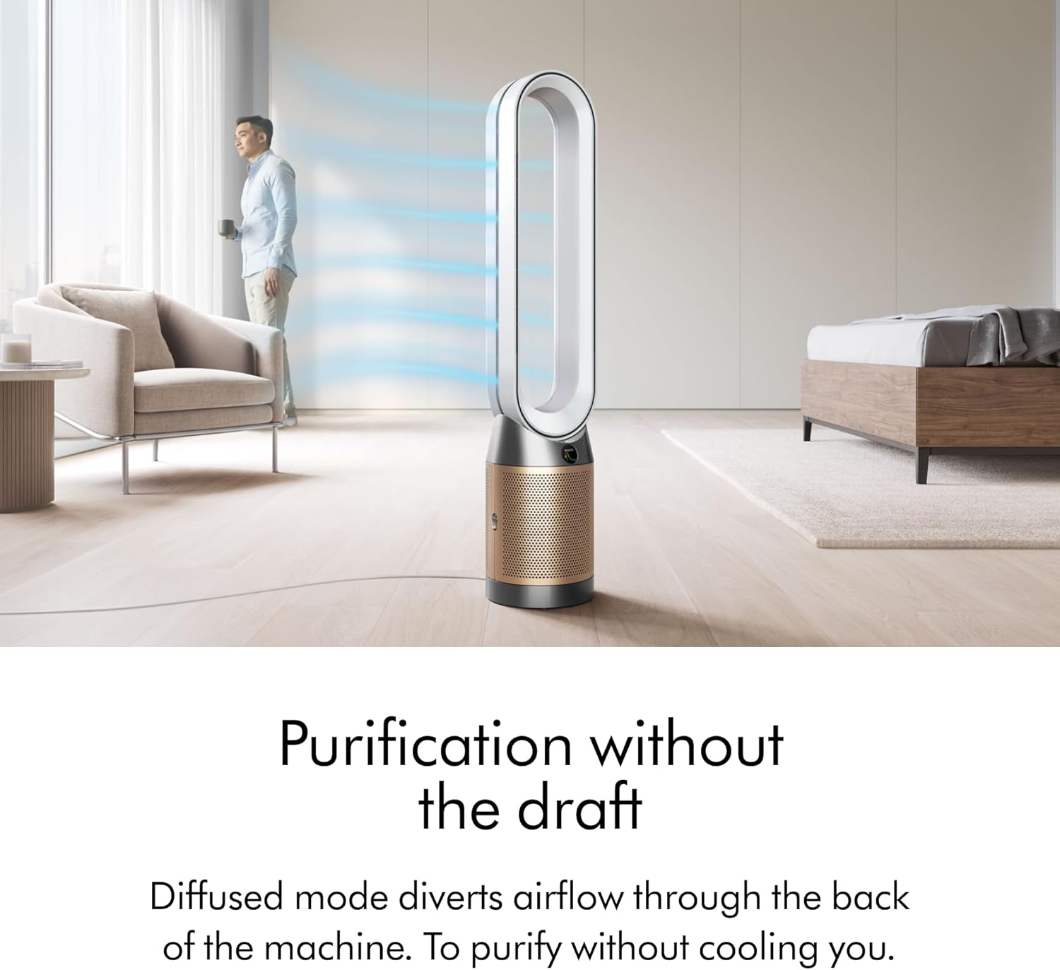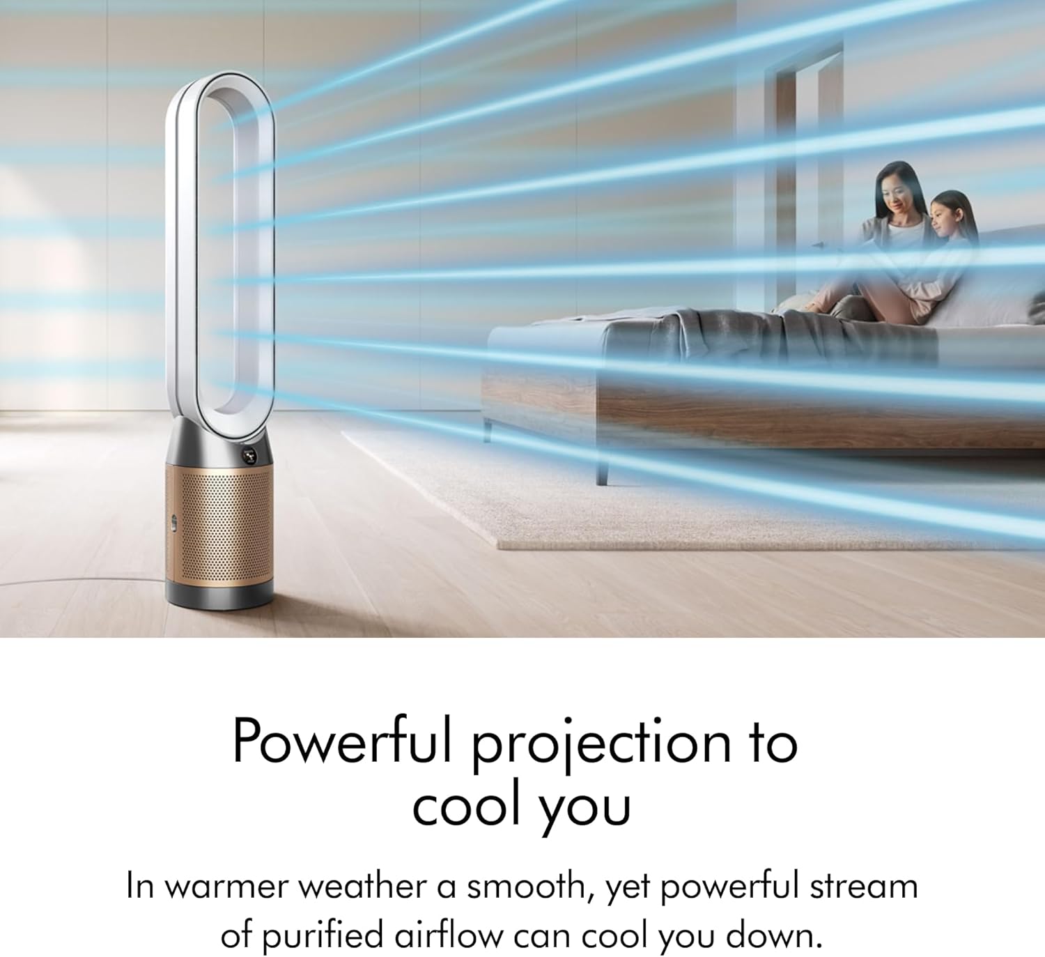 Dyson Air Multiplier technology projects over 76 gallons per second of smooth, yet powerful airflow⁷ to cool you in summer.⁶