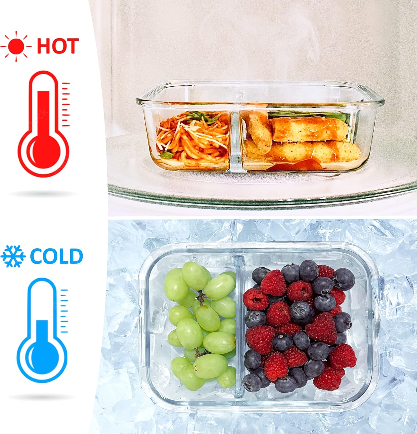 ALL PURPOSE BOROSILICATE GLASS: Set of three 1040 ml glass bento boxes include a divider to separate dishes, fruits, and snacks for portion control; the shatterproof lunchbox glass containers are dishwasher, freezer, microwave, and oven SAFE to 750 °F