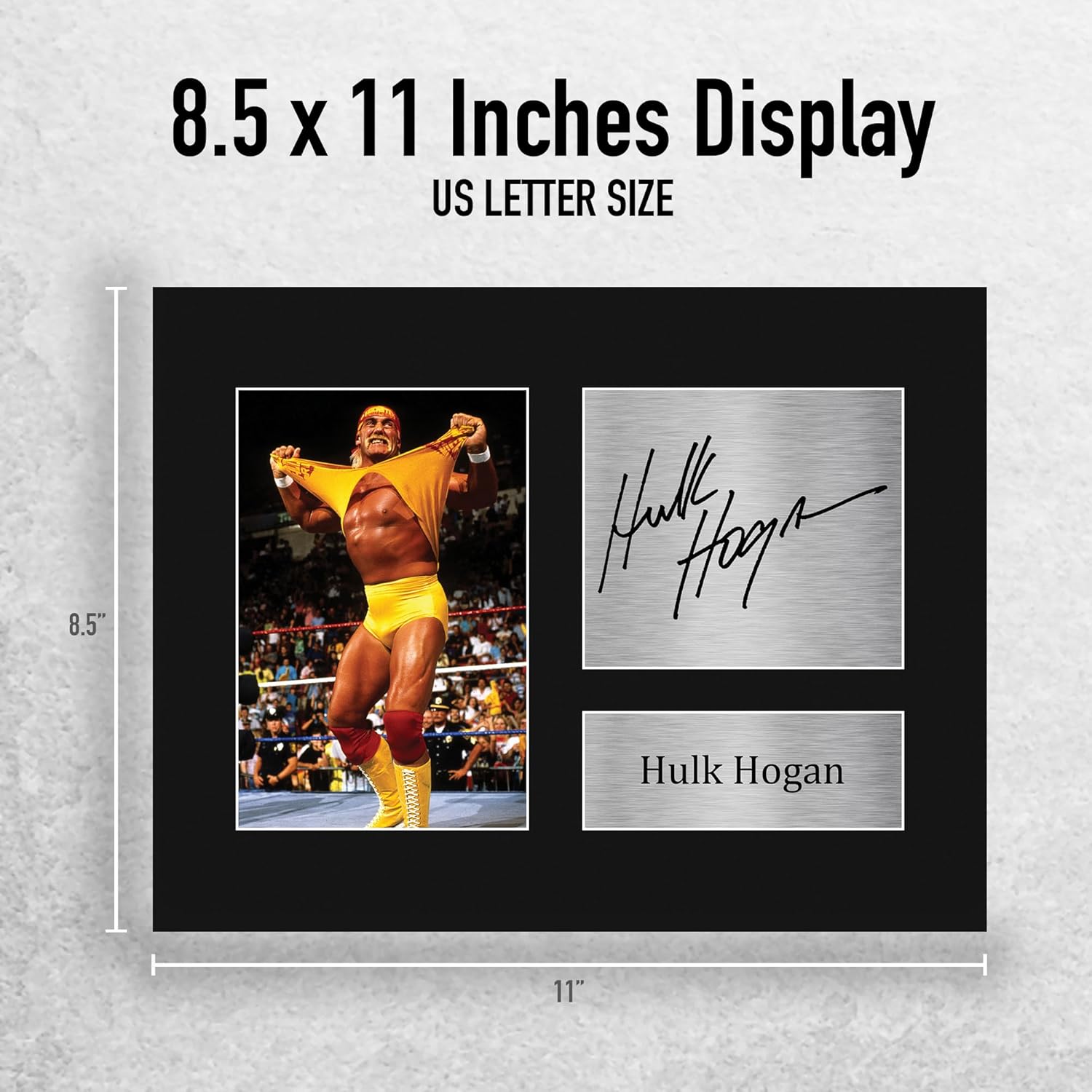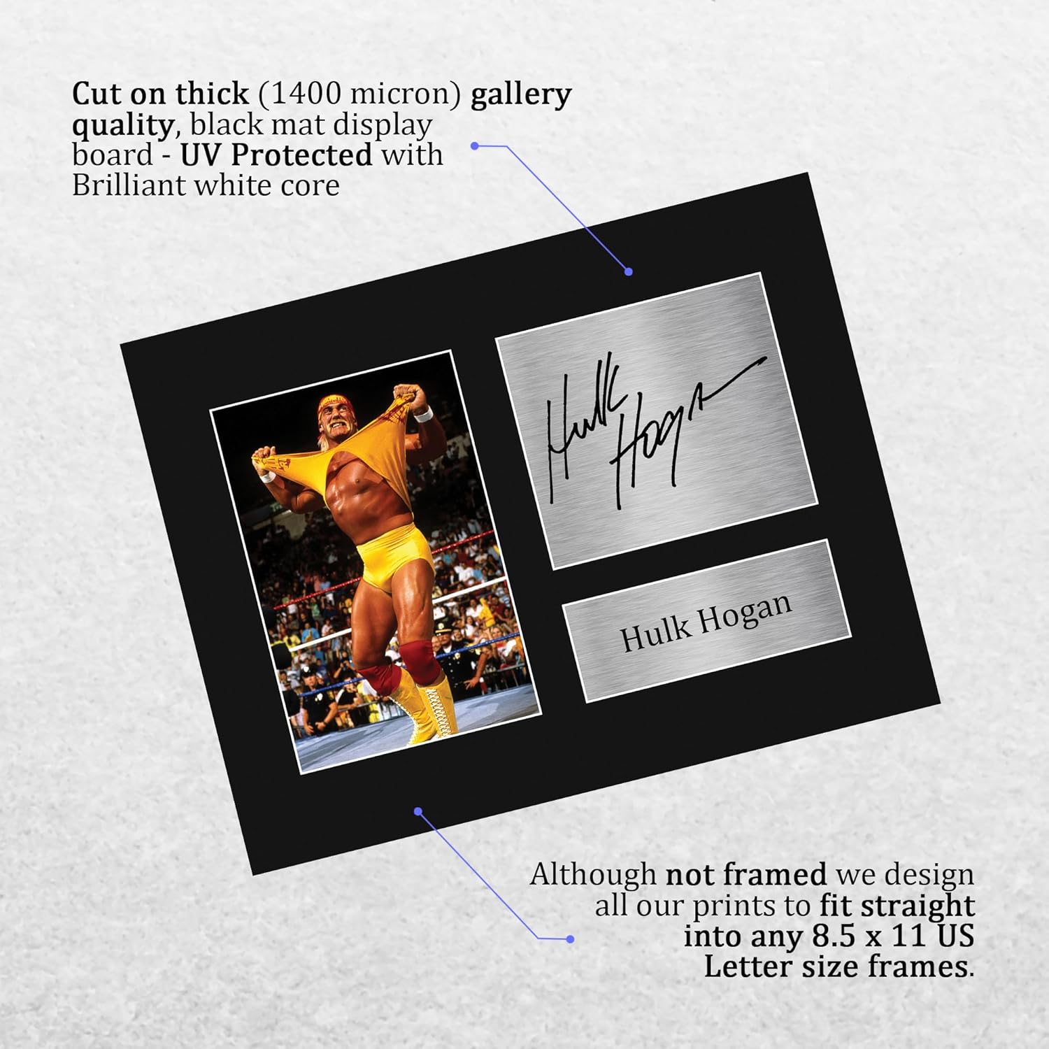 Professionally made in our studio, this Hulk Hogan Wrestling display comes with a high-quality picture alongside a printed copy of that famous autograph signature. Mounted in a matt black using an acid-free display board, it’s perfectly finished with Hulk’s name in a silver, printed plaque. Please note this print does not come framed. Makes the ideal Christmas/Birthday for fans of all ages, and best of all, it definitely won’t break the bank!