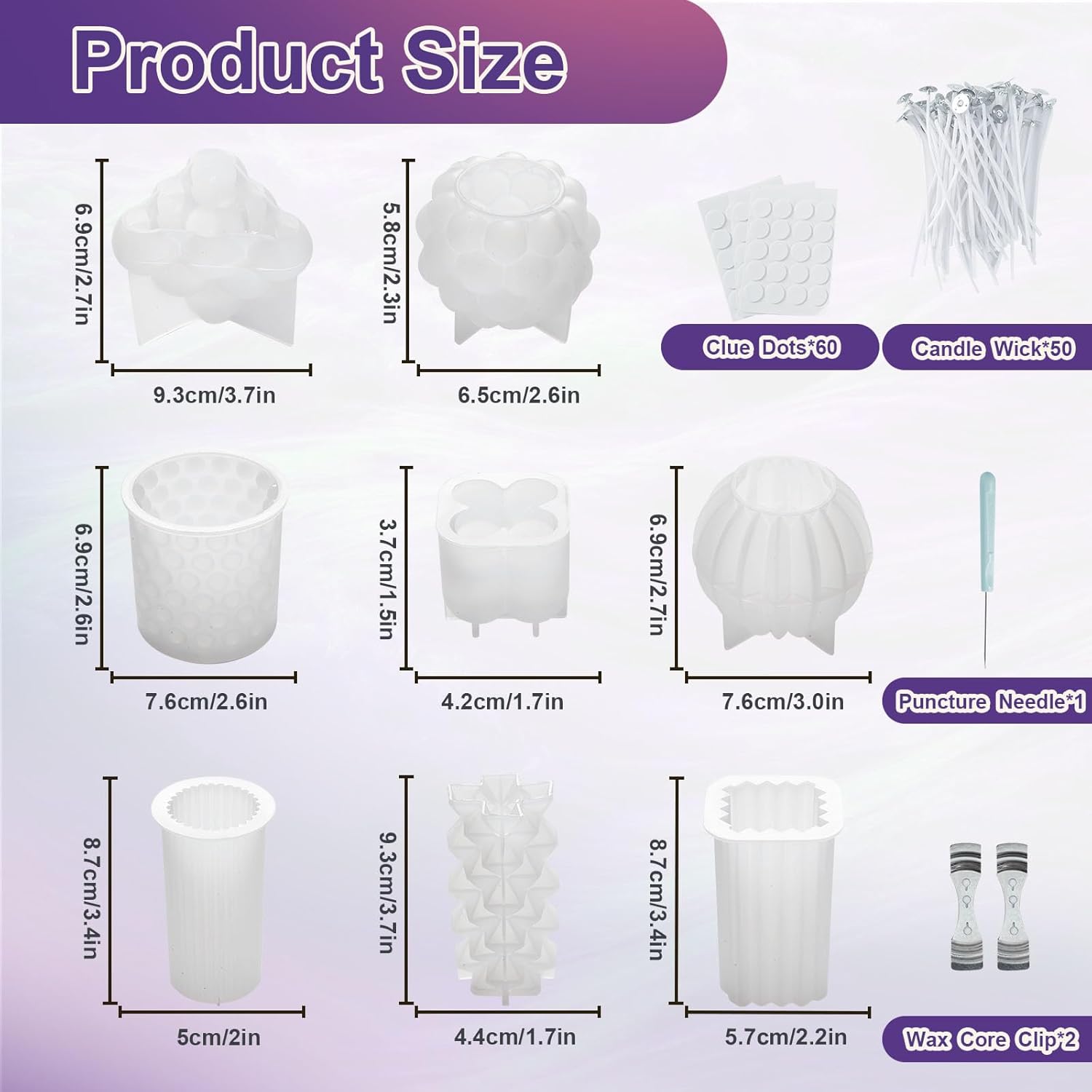 【Perfect DIY Candle set】This Comprehensive candle making kits set includes a total of 121 pieces, featuring 8 unique 3D candle moulds silicone, 50 candle wicks, 2 wick holders, 1 stitch needle, and 60 adhesive tape. Suitable for both kids and adults, this candle making kit set provides a diverse range of tools to cater to all your candle making needs, ensuring a delightful DIY experience.