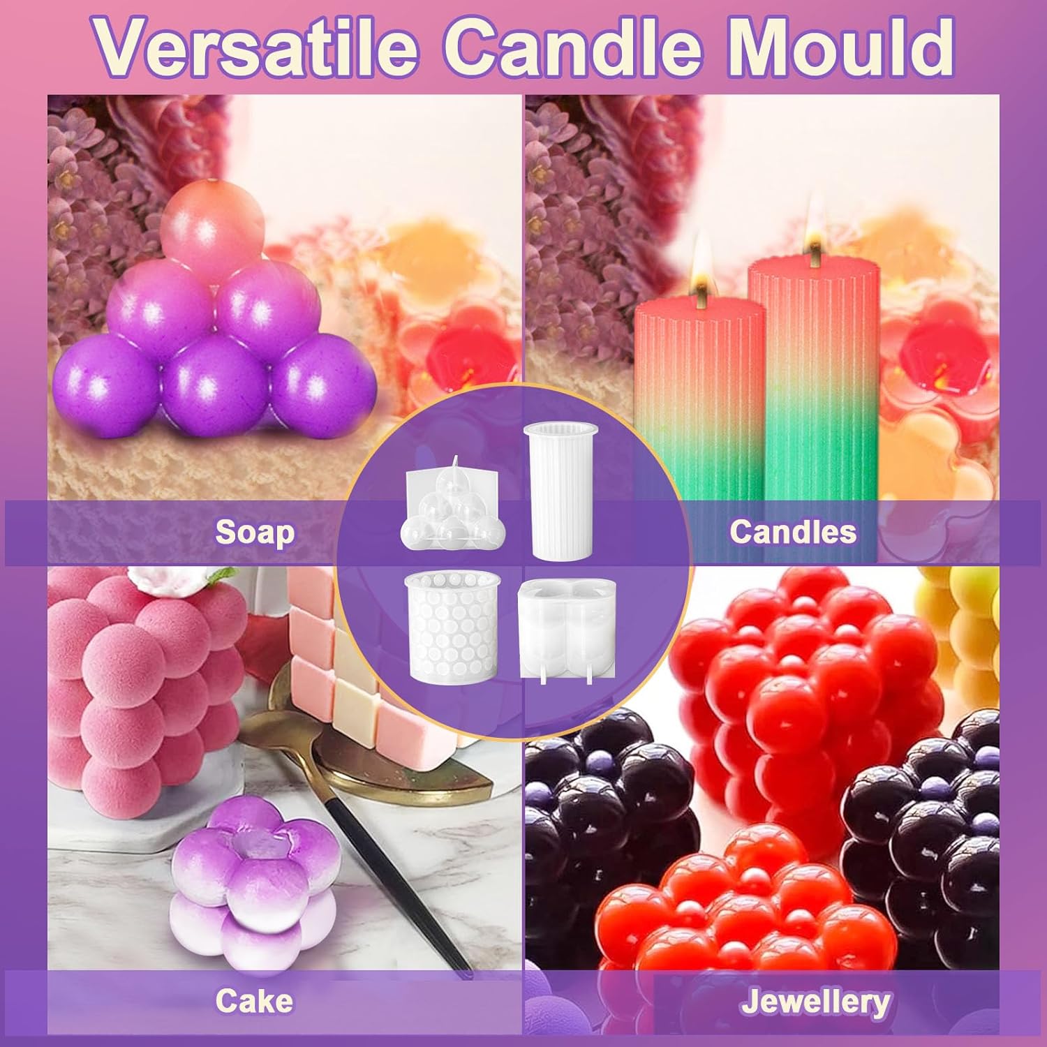 2.Varied Candle Styles: The DIY Candle set boasts 6 distinctive candle moulds, including large and small bubble, polygonal, yarn ball, rose, and onion designs. This comprehensive selection caters to a range of preferences and creative inspirations, allowing you to craft an array of unique candles.