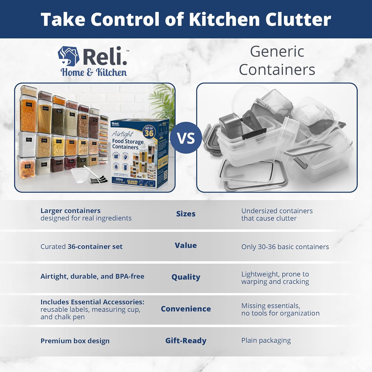 Reli. Airtight Food Storage Containers with Lids (36 Sets) | Kitchen Organizers and Storage Pantry Organizers | BPA Free Plastic Food Containers | Ultra Variety Pack w/Measuring Cup, 42 Labels, Pen