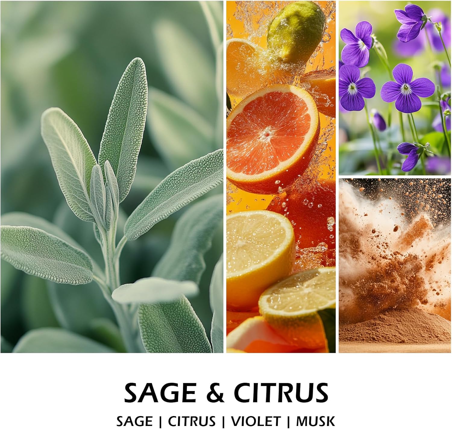 Sage & Citrus Scented Candle: Fill your room with a refreshing aroma with this sage & citrus candle. With notes of sage, citrus, violet, and musk, the candle will keep you refreshed and relaxed all day long