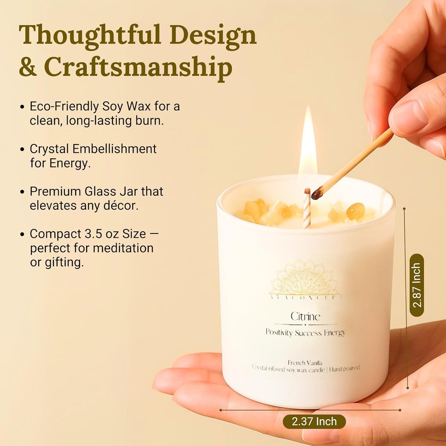 Premium Quality: Crafted from 100% natural soy wax with cotton wicks, these scented candles burn clean and smoke-free. Each small candle features authentic crystals including Amethyst, Citrine, and Lazurite embedded inside for visual appeal.