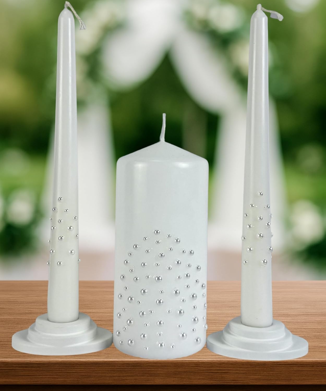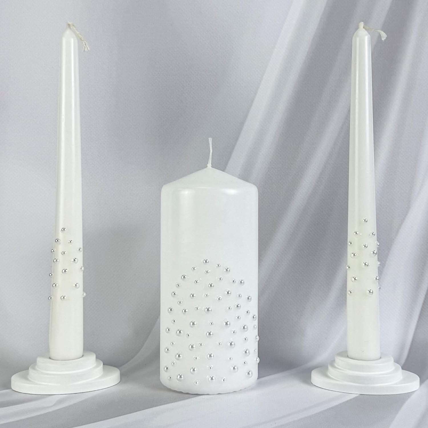 ✨ ELEGANT SYMBOL OF UNITY Celebrate your union in style. This unity candle set includes 6” x 3” pillar candle and two 10” taper candles (holders not included) — perfect for a meaningful unity ceremony. The classic white design fits beautifully into church weddings, rustic celebrations, or modern receptions