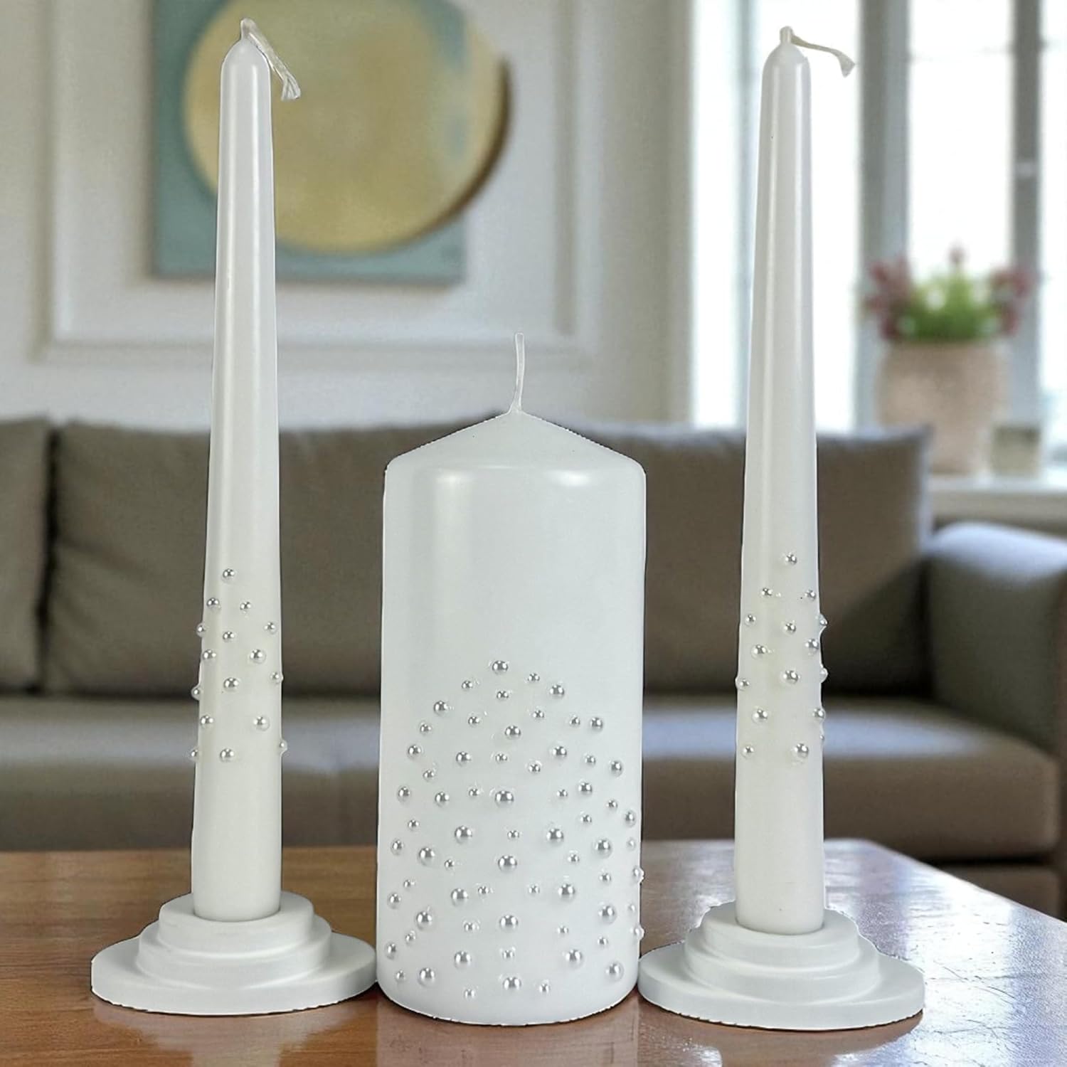 ✨ ELEGANT SYMBOL OF UNITY Celebrate your union in style. This unity candle set includes 6” x 3” pillar candle and two 10” taper candles (holders not included) — perfect for a meaningful unity ceremony. The classic white design fits beautifully into church weddings, rustic celebrations, or modern receptions