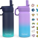 Kids Water Bottle, 2-Pack 16oz Water Bottles with Stickers and Straw, Stainless Steel Vacuum Insulated cup, Kids Water Bottle for School, Gifts for Boys and Girls(Blue/Purple)