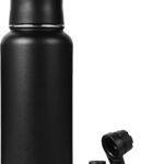 Neihepal 32 oz Insulated Water Bottle with 2 Lids (Straw & Spout Lid), 18/8 Stainless Steel Double Wall Water Bottles for Gym, Travel, Camping, Sports (Black,1 Pack)