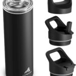 24 oz Insulated Water Bottle for Sports: 3 Lids, Leakproof, Keep Cold 24H, Car Cupholder Friendly, Stainless Steel Water Flask with Straw and Spout Caps for Gym, School, Work, Cycling (Midnight Black)