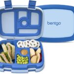 Bentgo Kids Bento-Style 5-Compartment Leak-Proof Lunch Box – Ideal Portion Sizes for Ages 3 to 7 – Durable, Drop-Proof, Dishwasher Safe, PFAS & BPA-Free & Made with Food-Safe Materials (Blue)