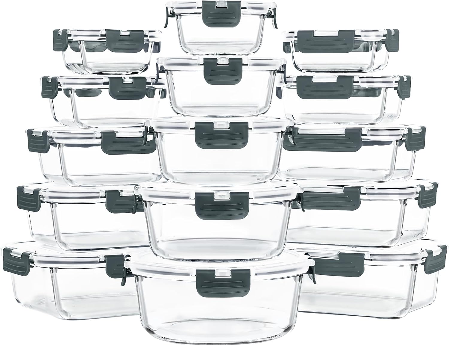 Skroam 15 Pack Glass Food Storage Containers with Lids Airtight, Glass Meal Prep Containers, Lunch Containers with Lids for Microwave, Oven, Freezer and Dishwasher Safe