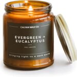 Calyan Wax Co. Evergreen & Eucalyptus Scented Candle – 57 Hour Burn – Luxury Non Toxic Soy Wax Candles – Long Lasting Amber Glass Jar Candle for Home – 7.2oz