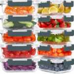 KOMUEE 10 Pack Glass Food Storage Containers, Meal Prep Containers with Lids, Airtight Glass Lunch Boxes, Freezer, Oven, and Microwave Safe