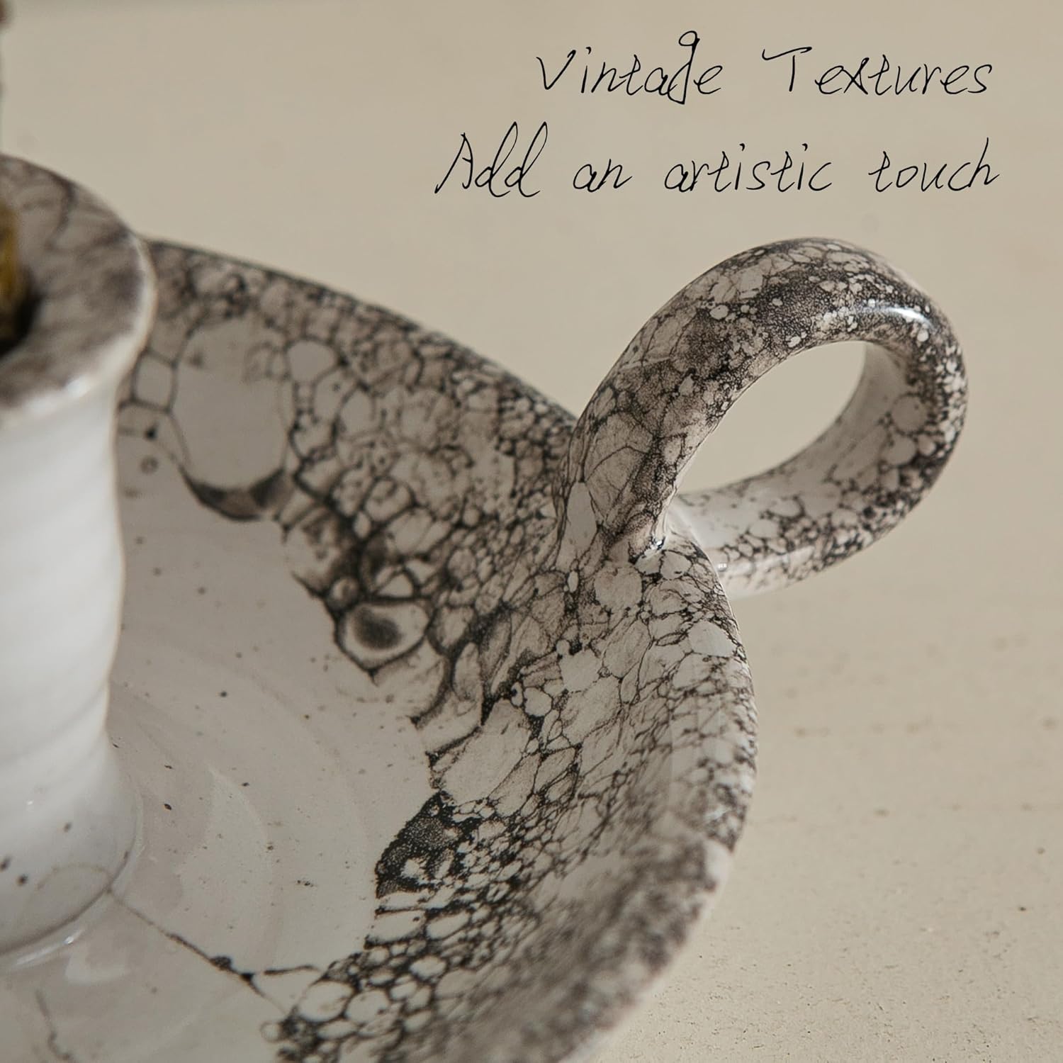 EASY TO CARRY & USE – Featuring a comfortable handle, this ceramic candlestick holder allows for easy portability, whether you’re moving from room to room or using it during a power outage. The handle also adds a classic vintage touch, making it both functional and decorative.