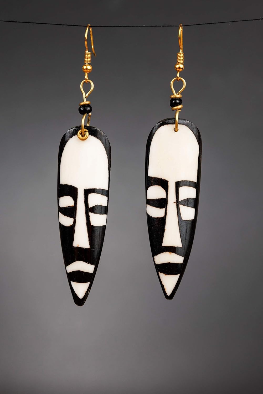 Handmade Long African Bone Earrings made of reused, up cycle bone. Length: approximately 3.5 Inches (with hooks).